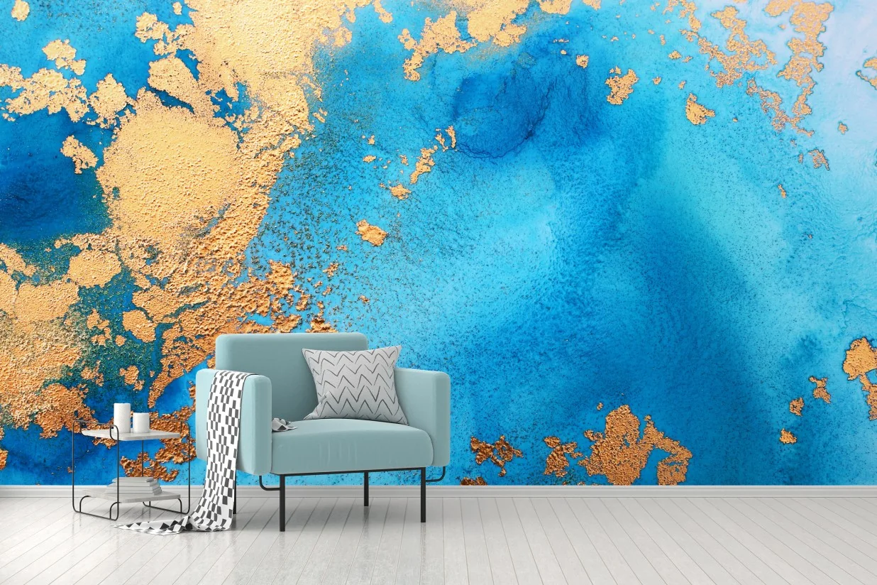 Fototapete Blau-gold abstrakte ozeantextur