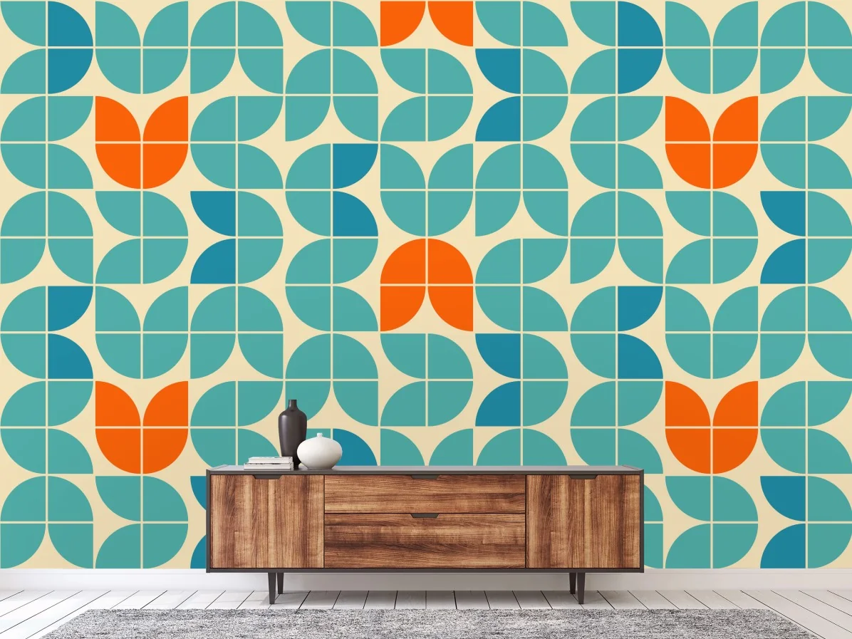 Fototapete Retro geometrisches fliesenmuster in türkis und orange