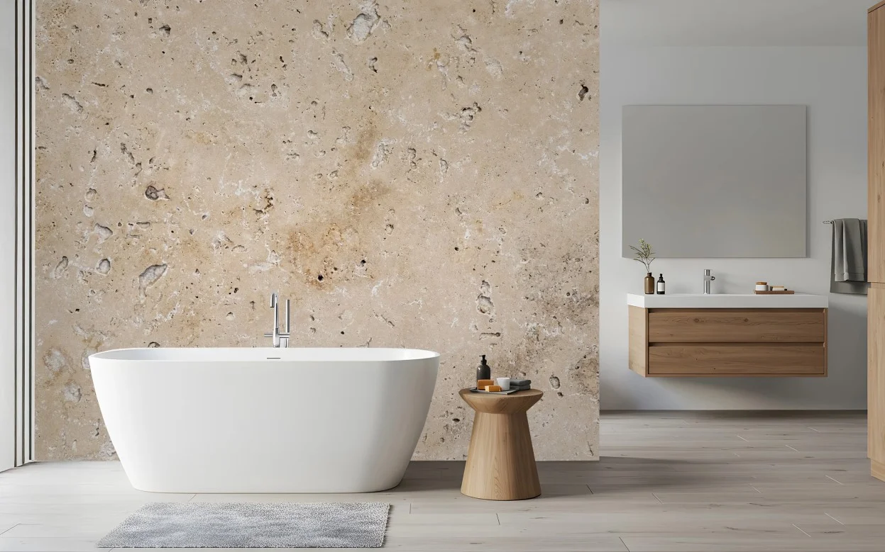 Verleihen Sie Ihrem Raum eine natürliche beige Steinstruktur, die Wärme und dezente Eleganz ausstrahlt.MehrWeniger