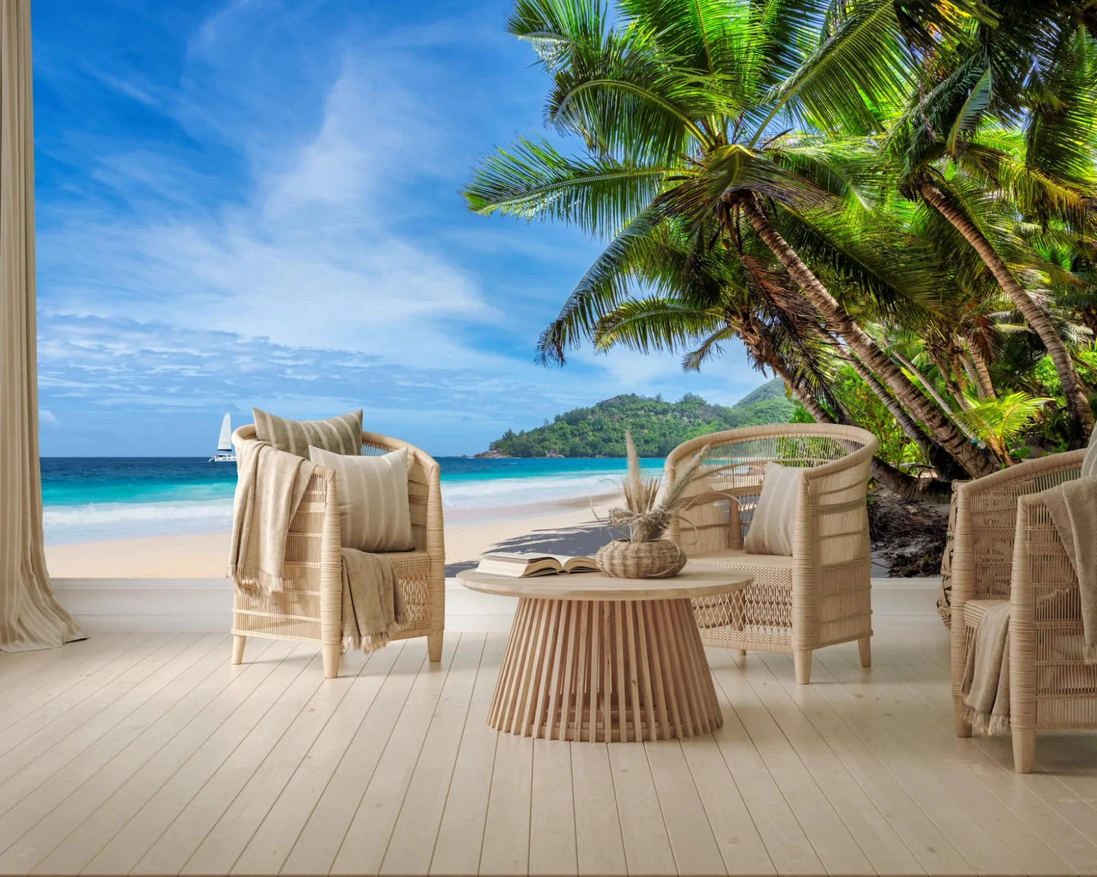 - meer, ozean, sommer, urlaub, insel, türkiswasser, palmen, segelboot, sandstrand, tropischer strand