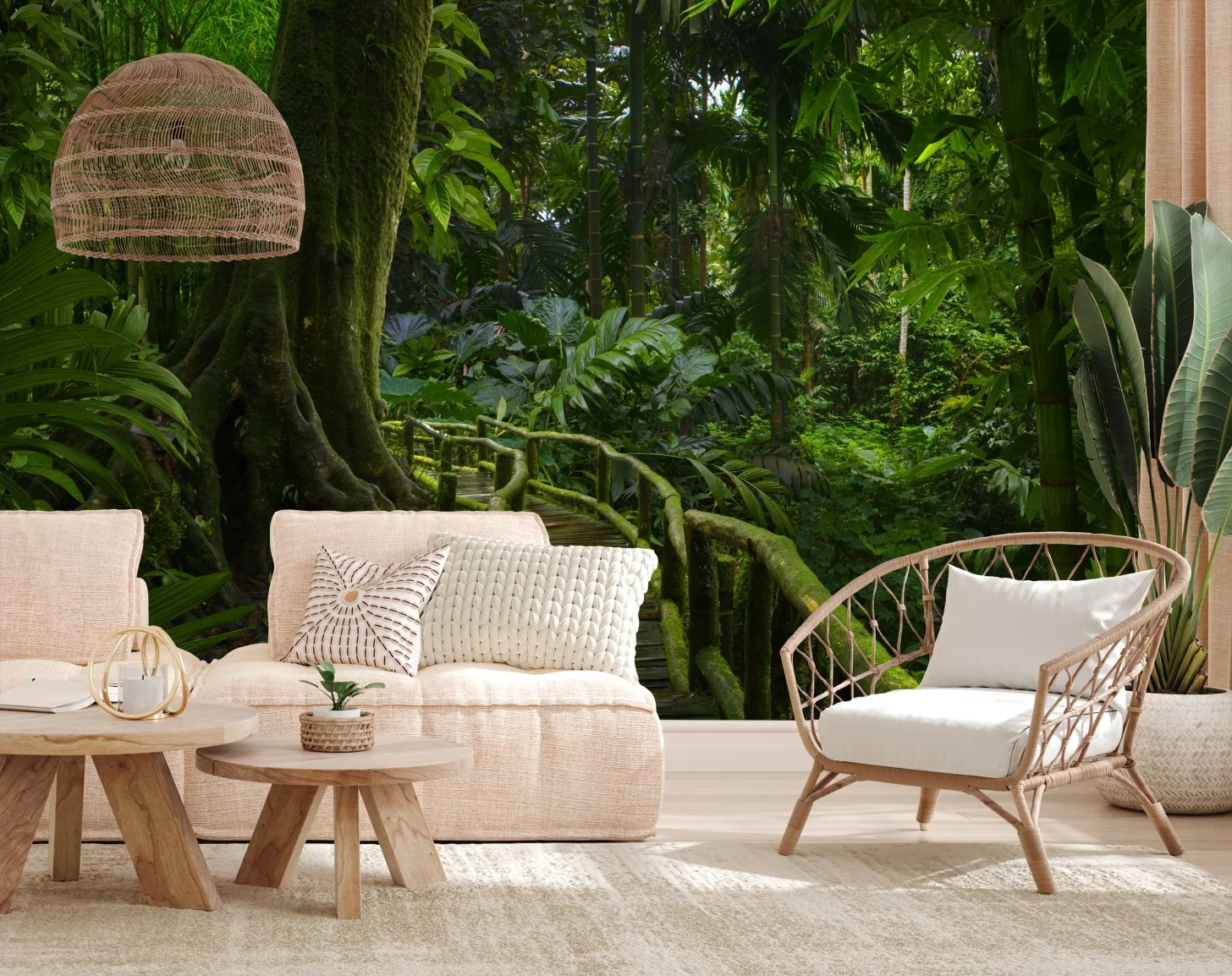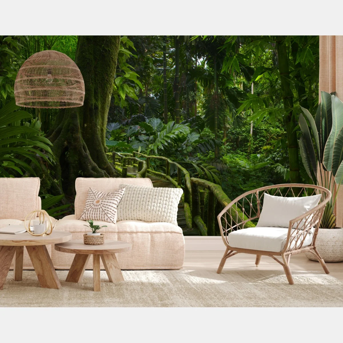 Fototapete Ruhiger dschungelsteg durch üppigen regenwald