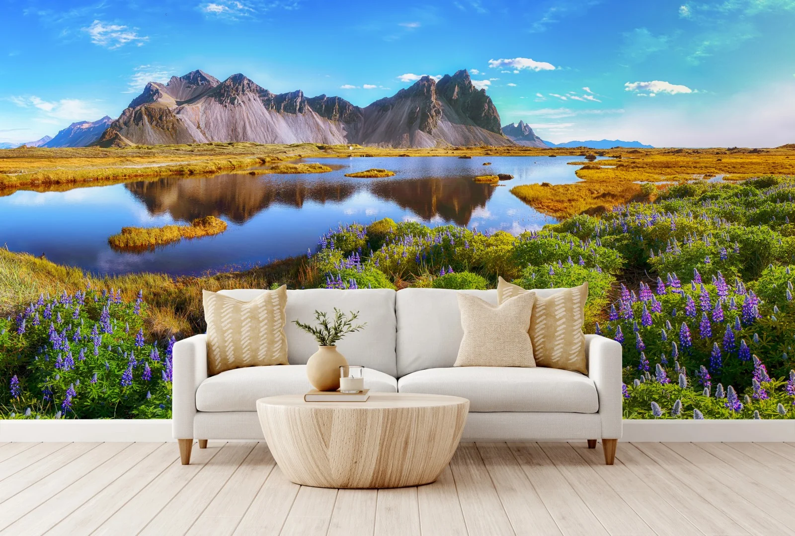 Fototapete Lebendige lupinenwiesen bei Vestrahorn, Island