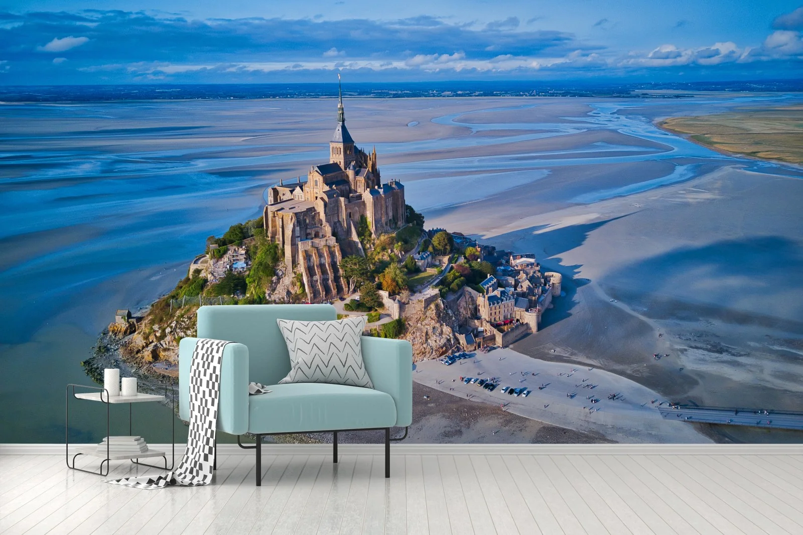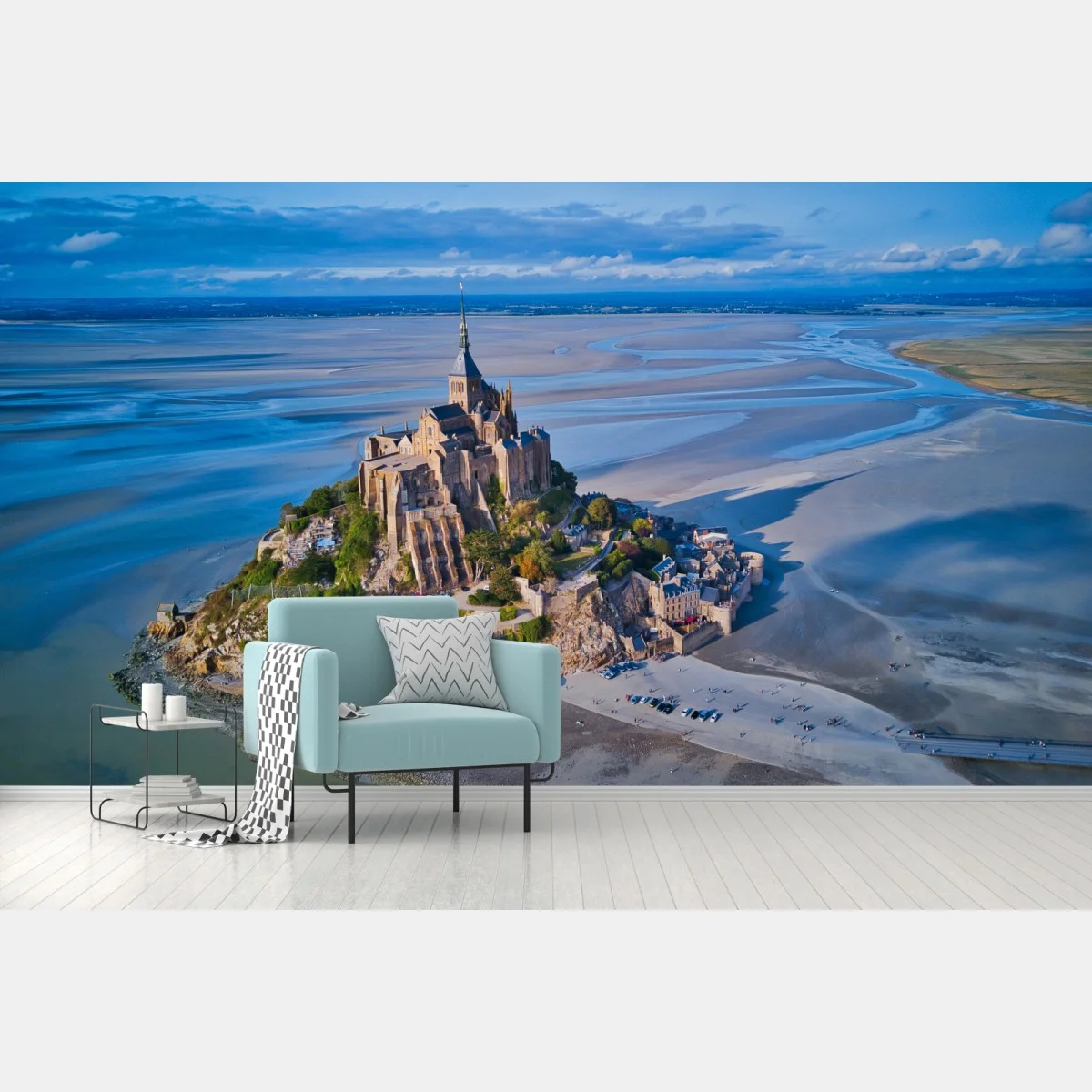 Fototapete Mont Saint-Michel luftaufnahme panorama