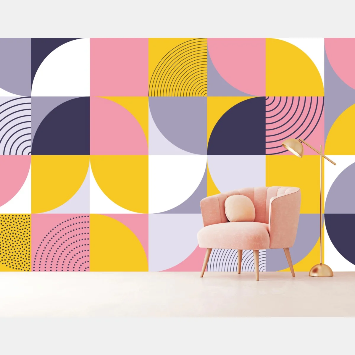 - bunt, minimalistisch, modern, abstrakt, pastell, wanddeko, retro, geometrisches muster, halbkreise, mosaik
