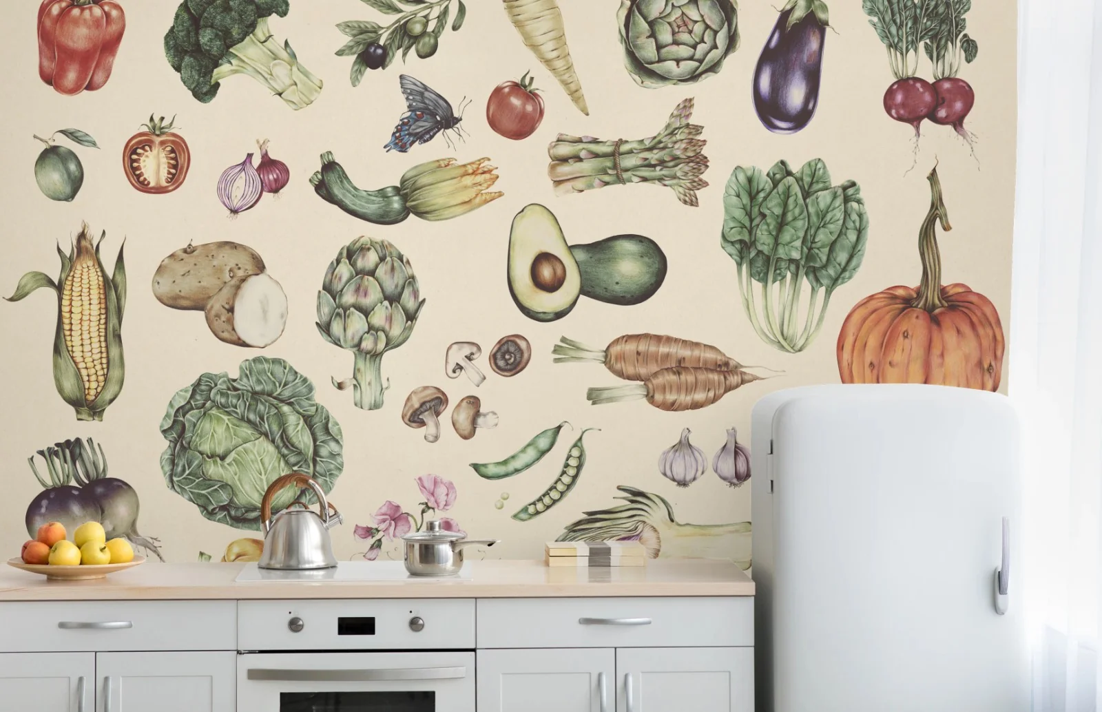 Fototapete Handgezeichnetes botanisches gemüsemotiv