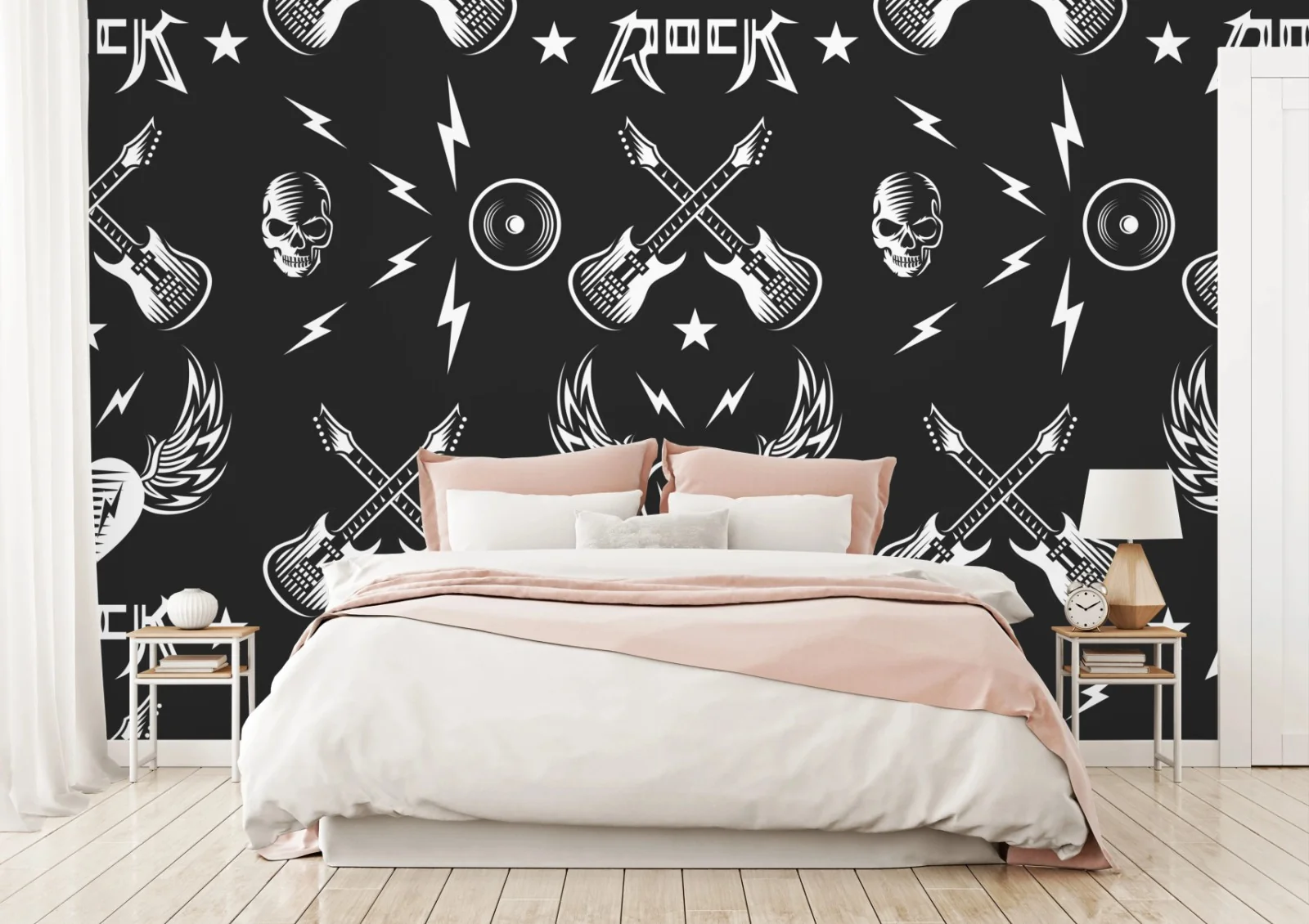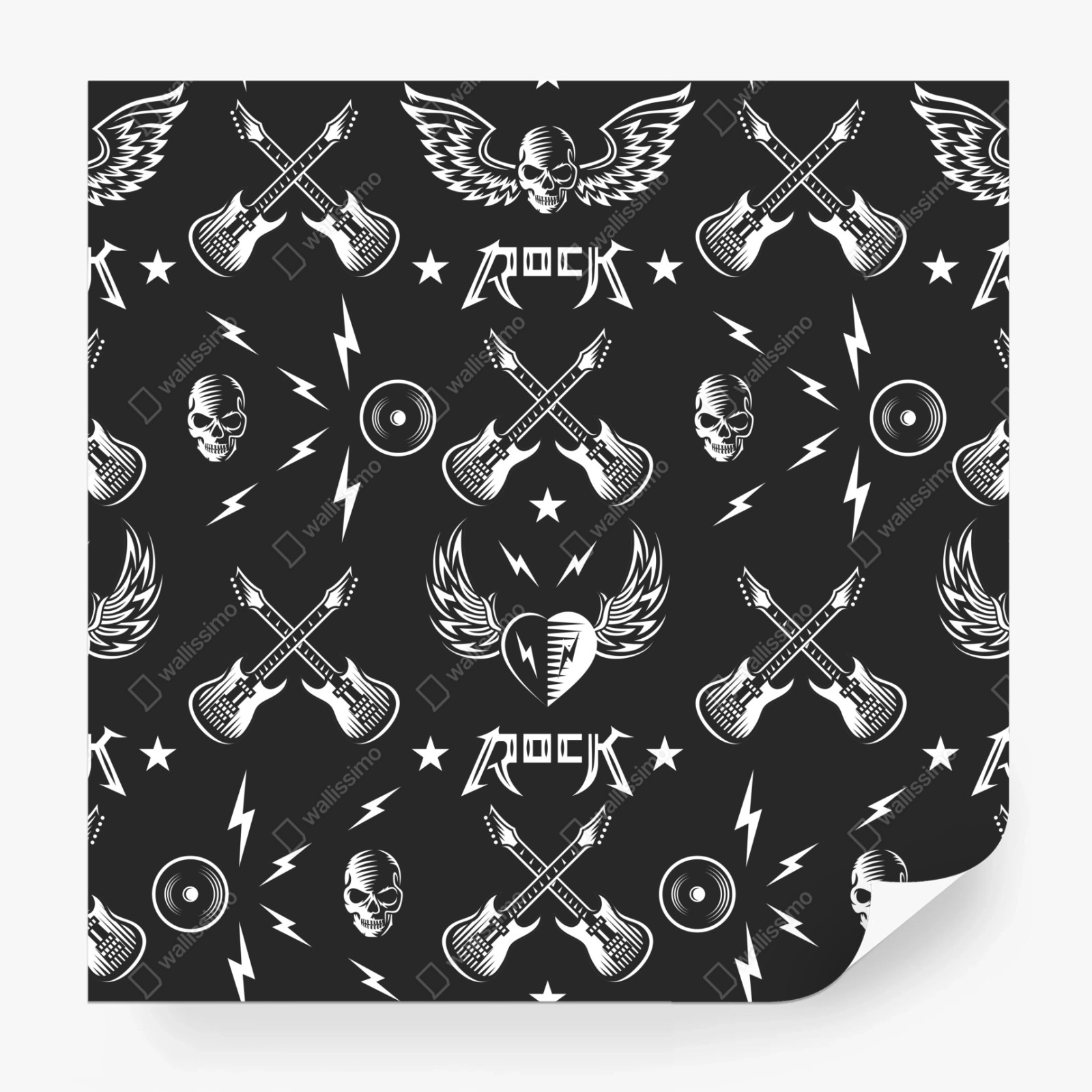 - sterne, nahtloses muster, monochrom, musik, rock, schädel, gitarren, viny, l blitze, geflügeltes herz