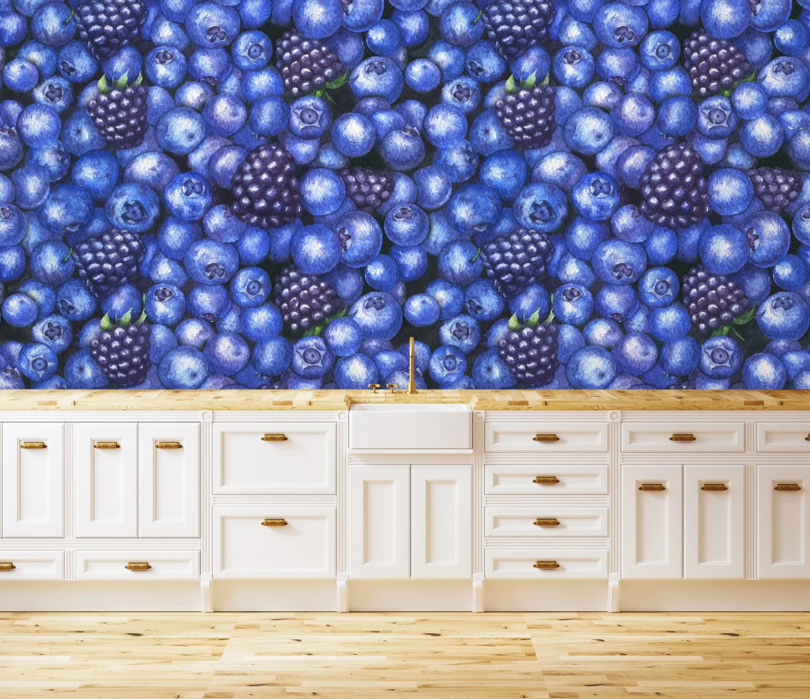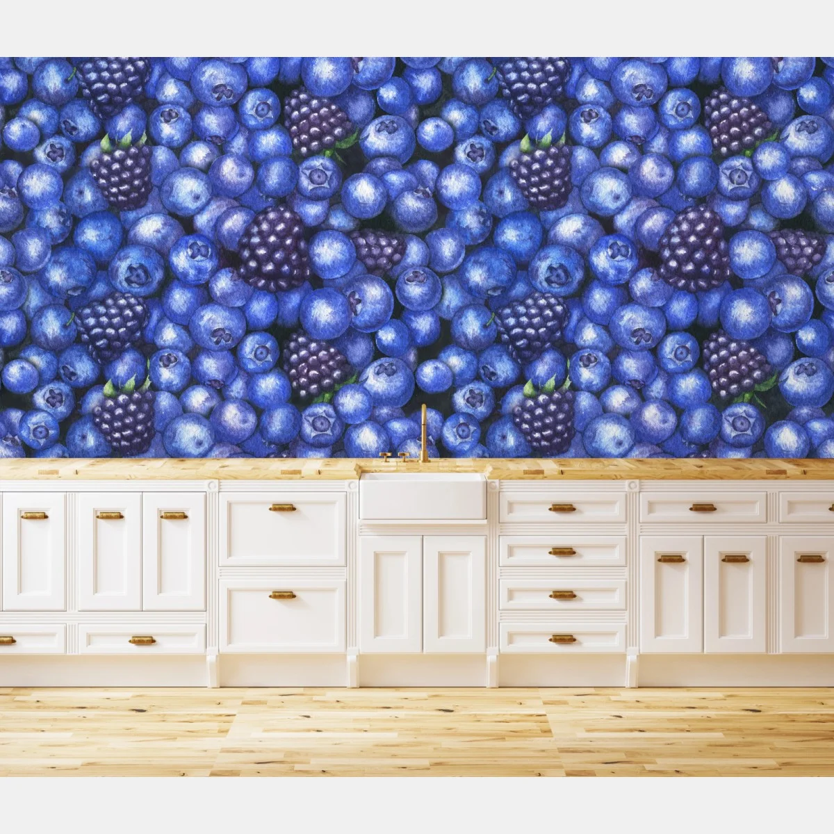 Fototapete Aquarellmuster mit blaubeeren und brombeeren