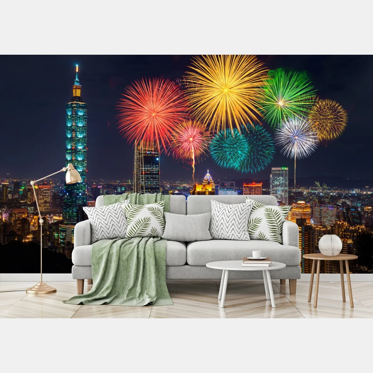 Fototapete Taipeh feuerwerk über der stadtsilhouette