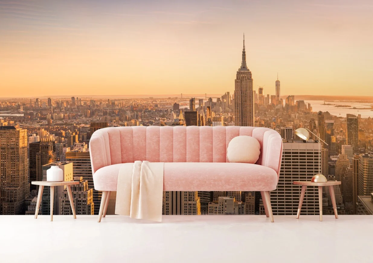 Fototapete Goldener sonnenuntergang über der skyline von New York