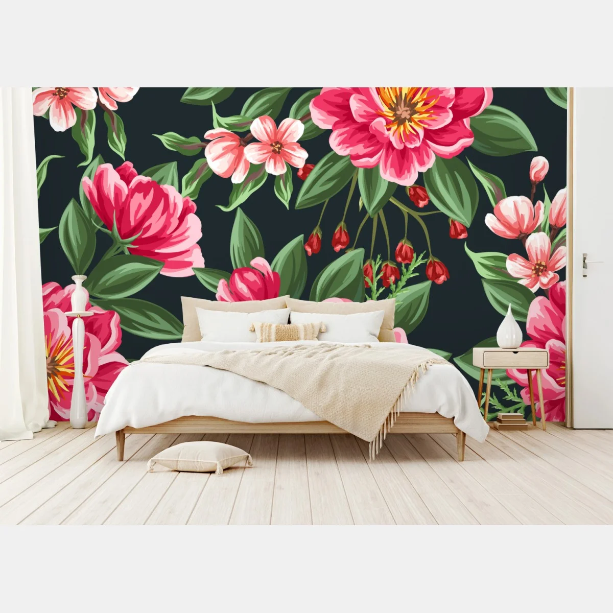 Fototapete Rosa aquarell blumenmuster auf dunklem hintergrund