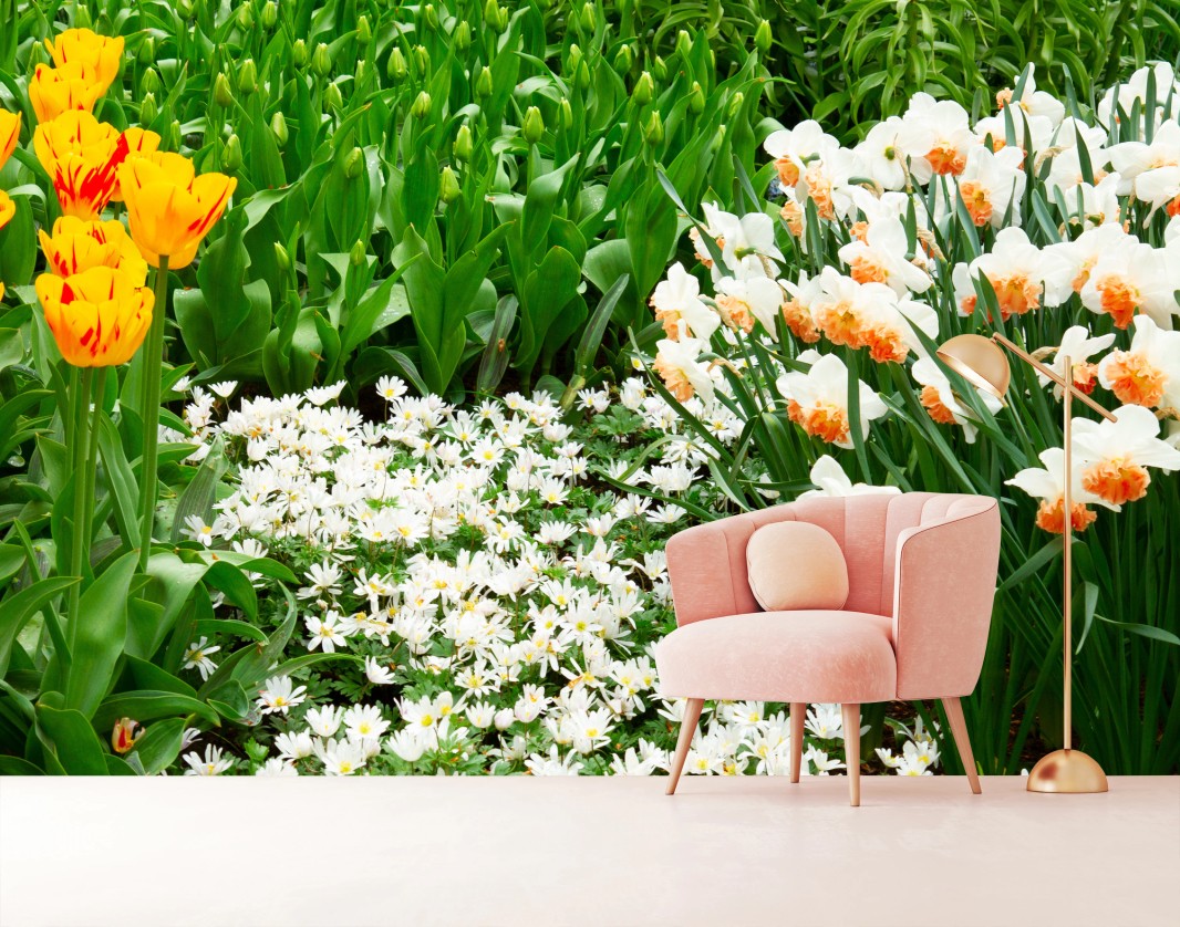 Fototapete Lebendiger frühlingsblumengarten