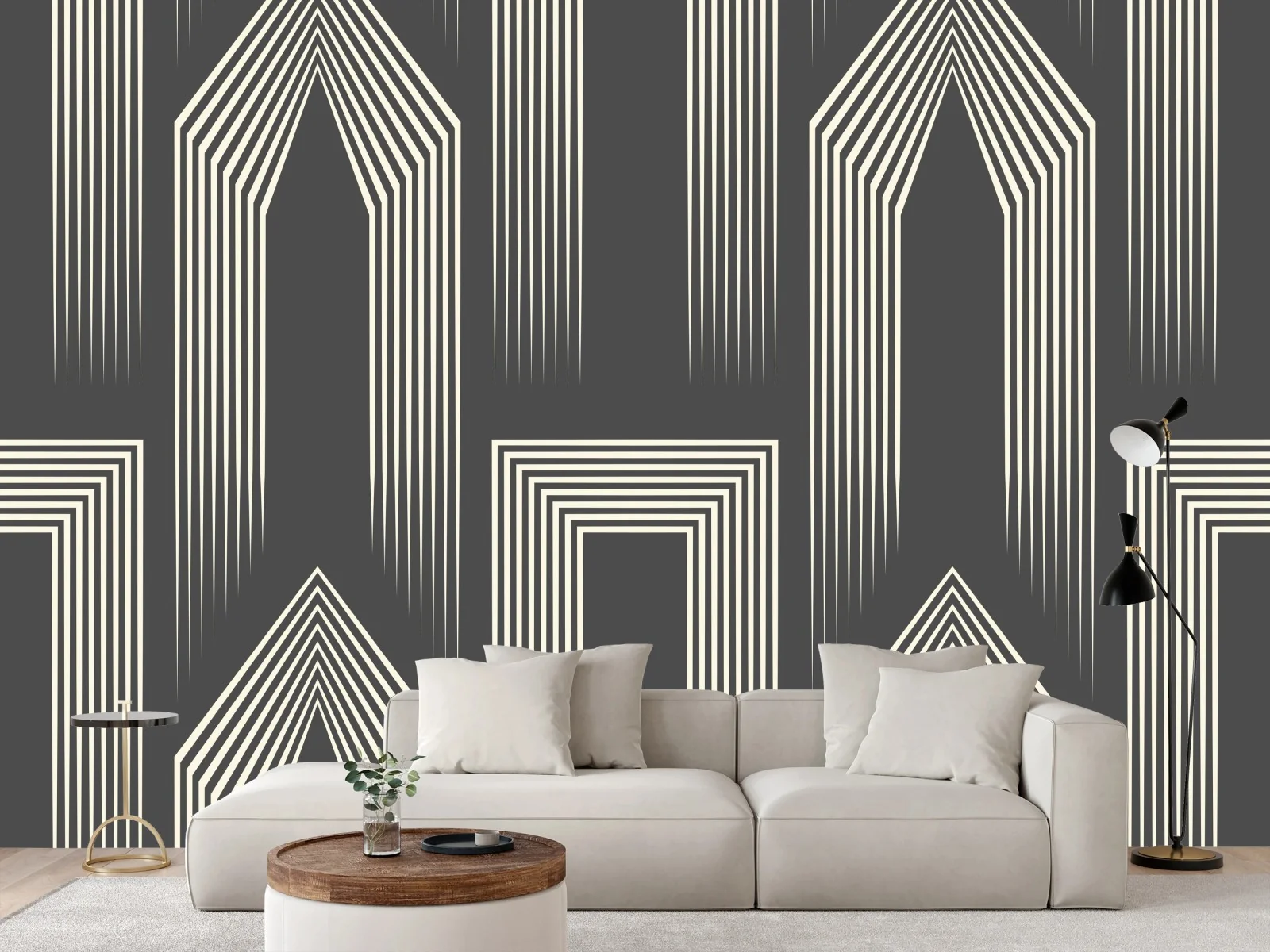 Fototapete Geometrisches art-deco-muster in grau und beige