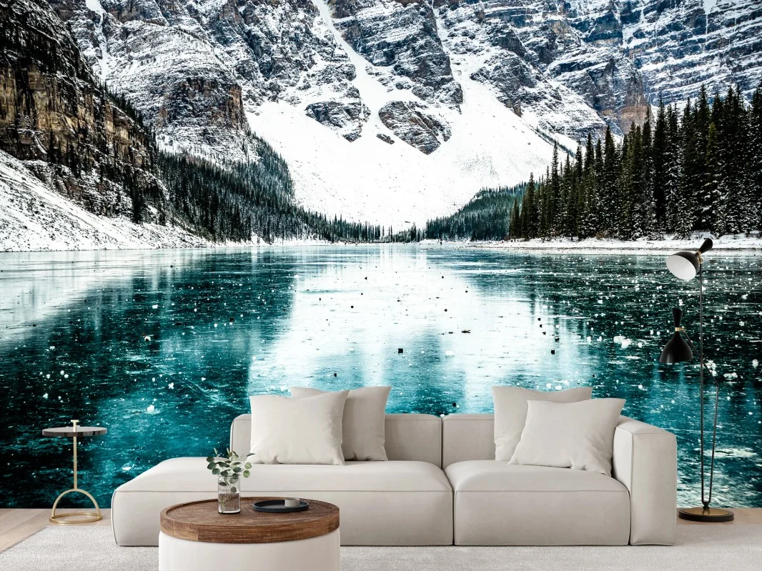 Fototapete Eisiger türkissee mit bergreflexion