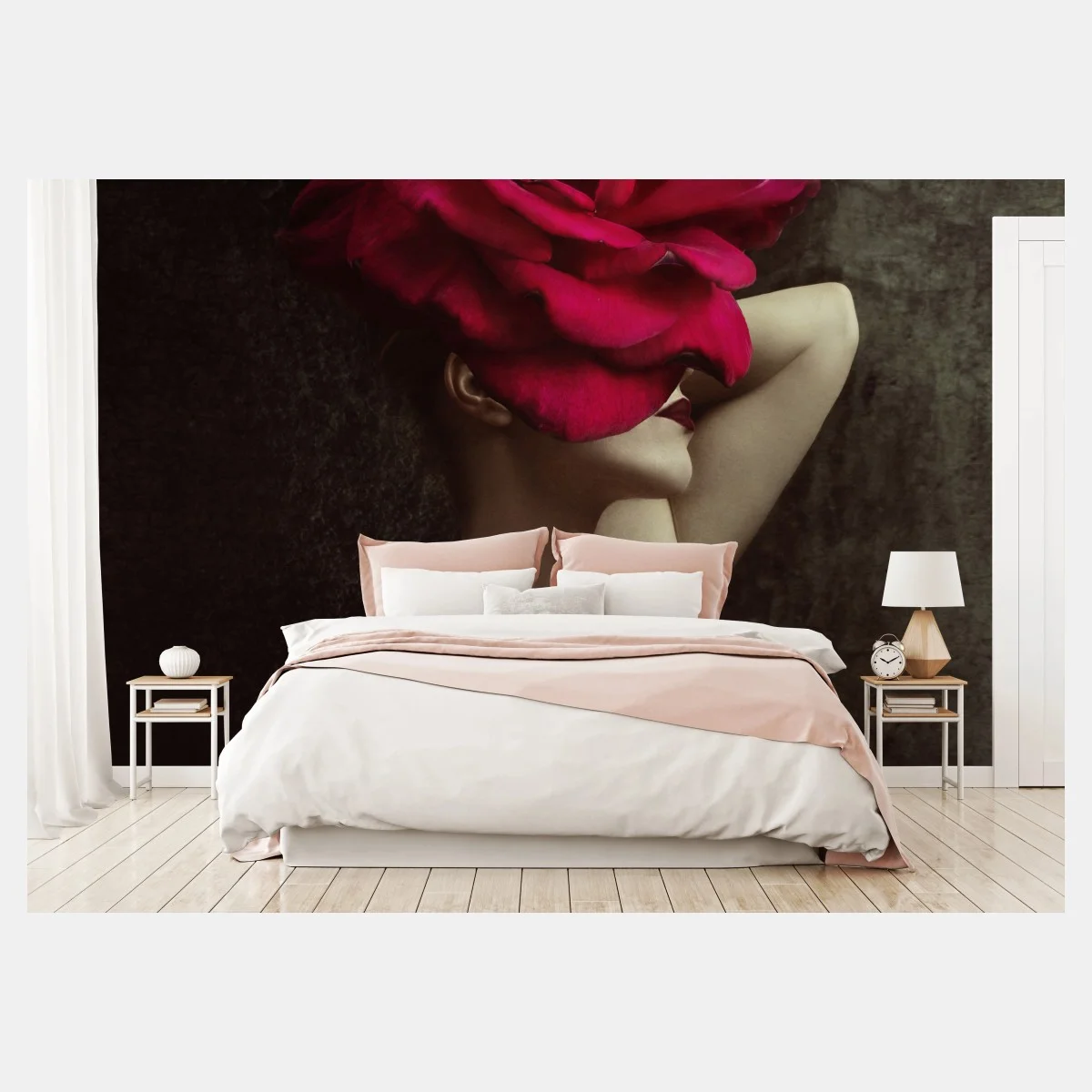Fototapete Frau mit rosenkopf surreales blumenporträt