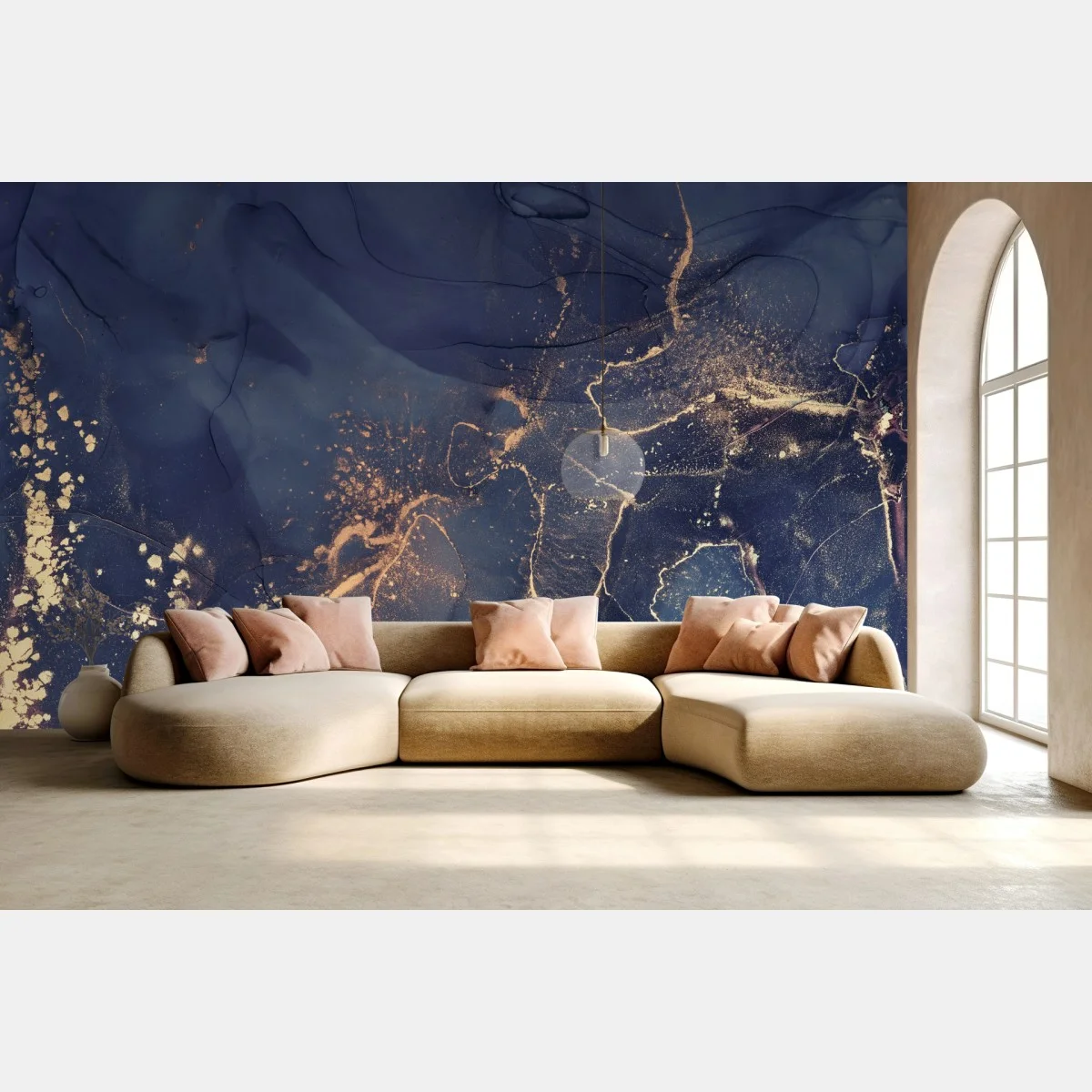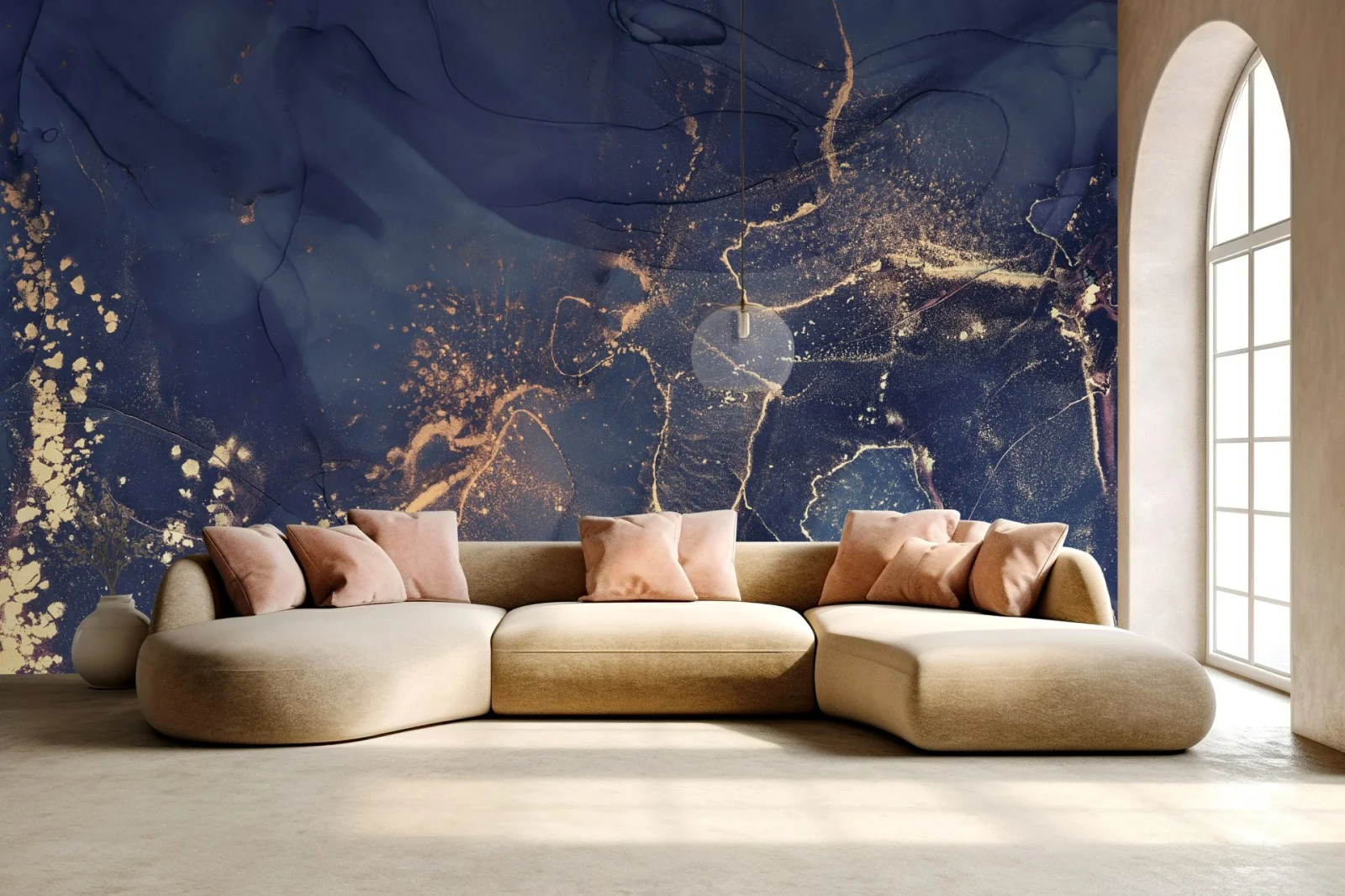 Fototapete Dunkelblaue marmor-abstraktion mit goldenen adern