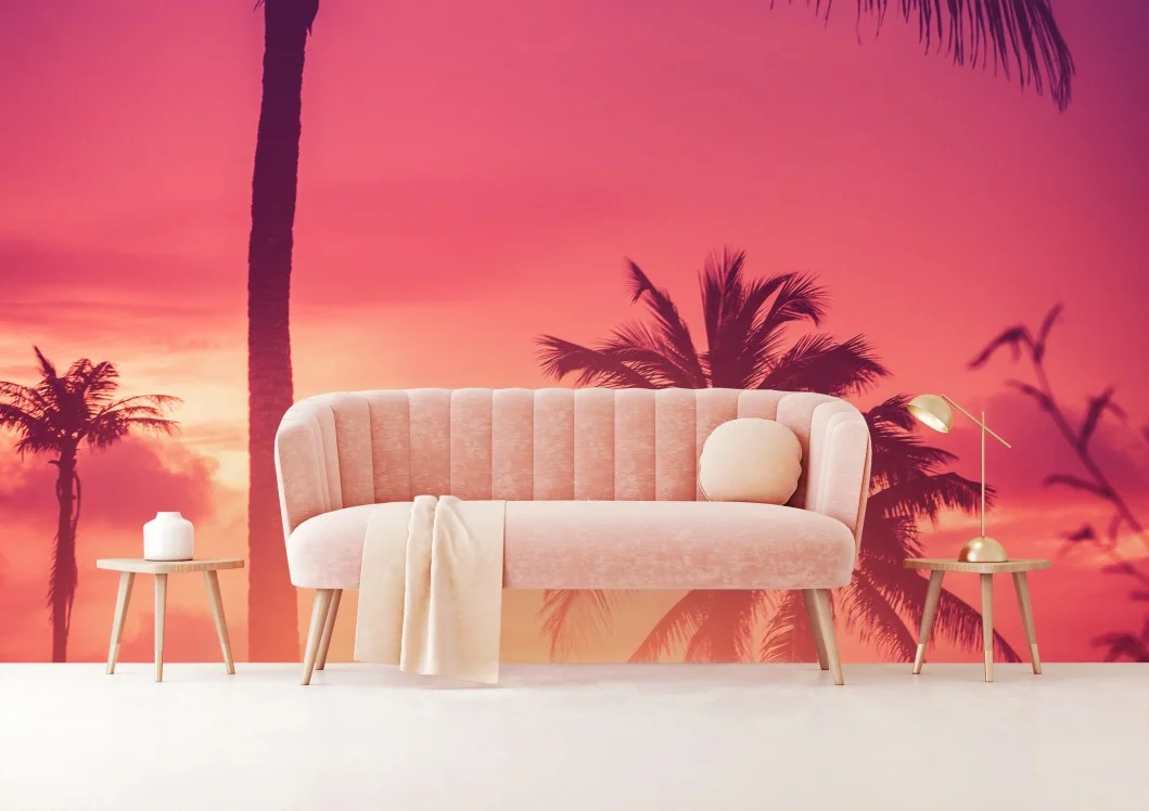 Fototapete Tropischer sonnenuntergang mit palmen