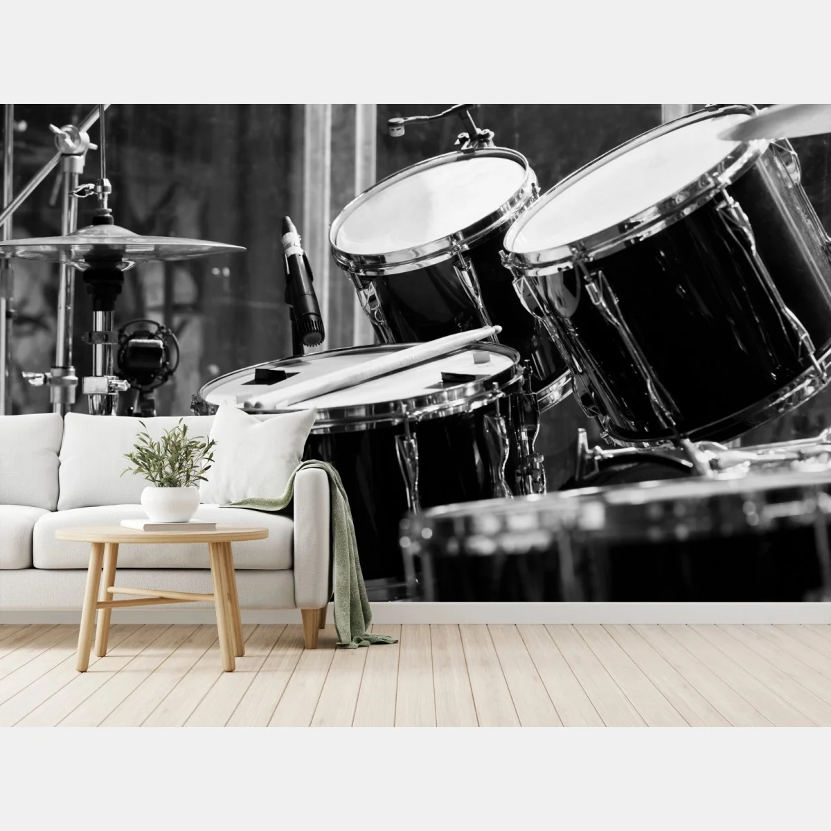 Fototapete Schwarzweißes schlagzeug nahaufnahme
