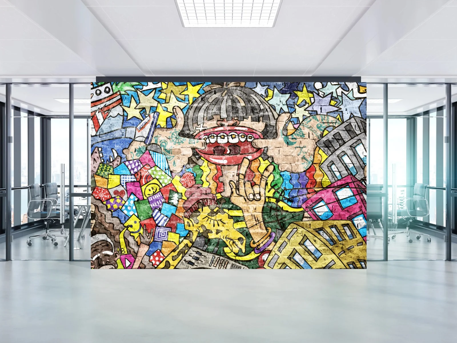 Fototapete Buntes graffiti-mural mit verspielter figur