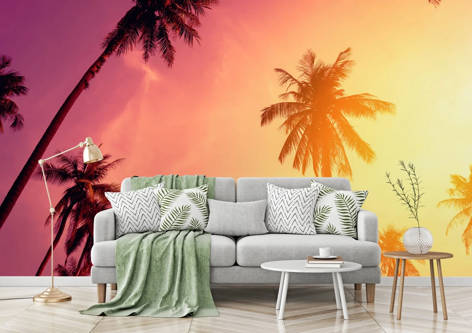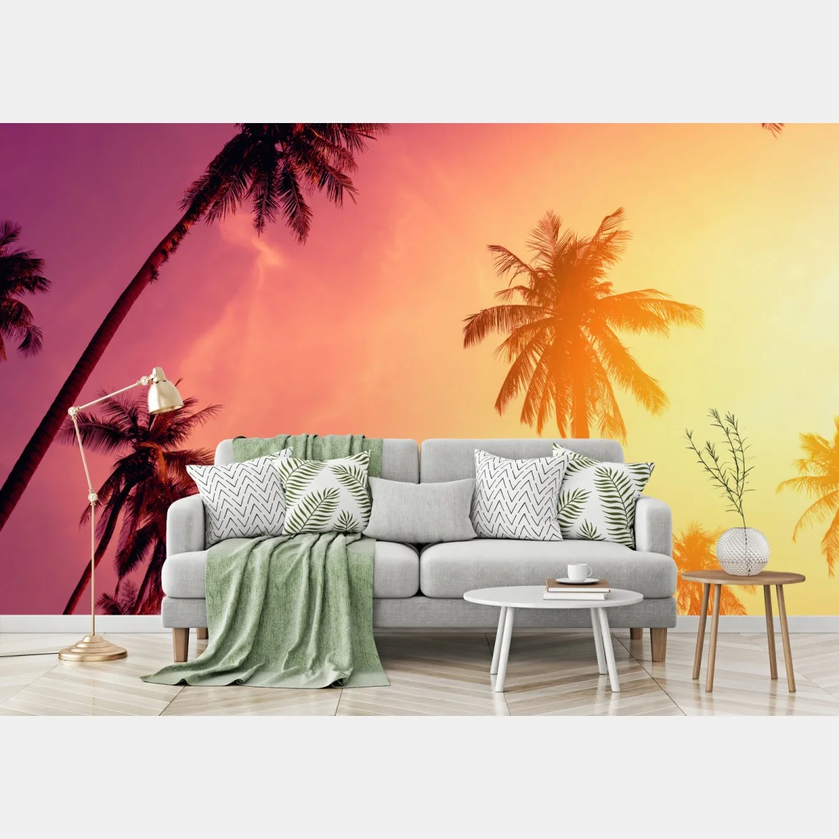Fototapete Tropischer sonnenuntergang mit palmen