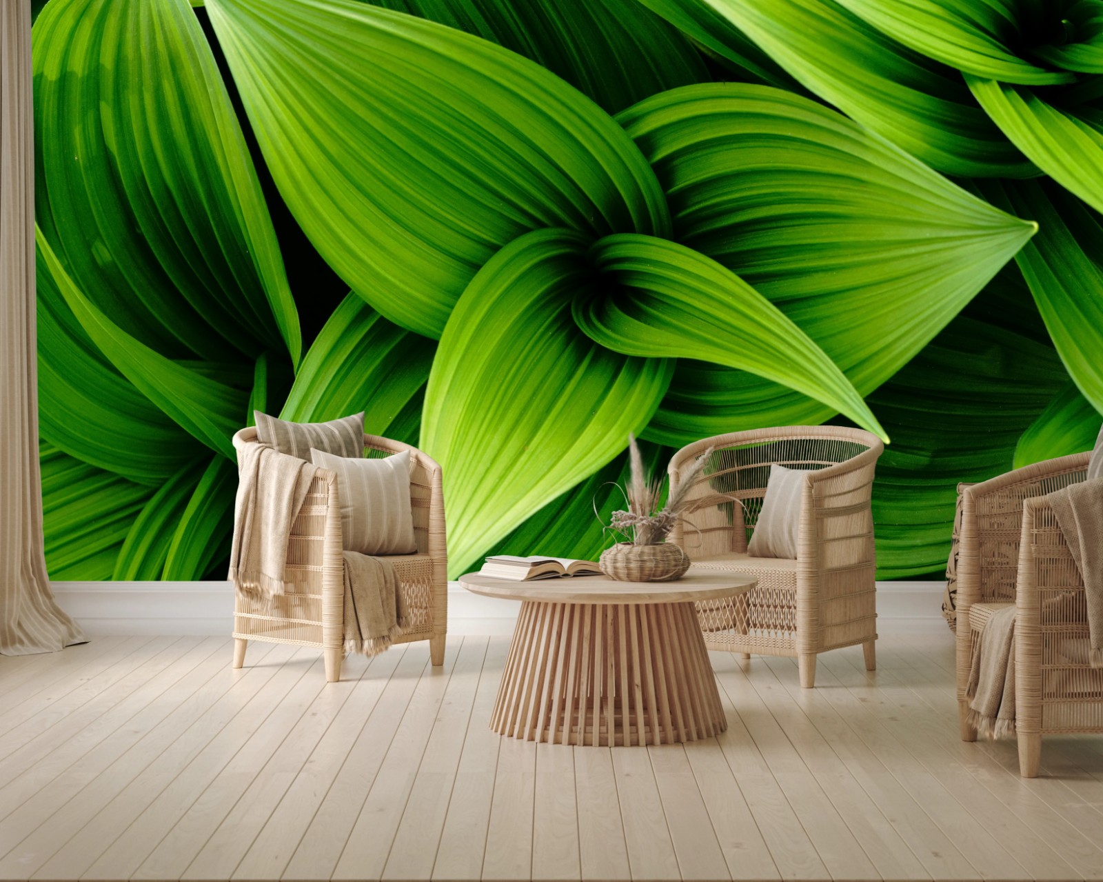 Bringen Sie beruhigende natürliche Energie in Ihr Zuhause mit einer lebendigen Nahaufnahme grüner Blätter, perfekt um eine frische, naturnahe Atmosphäre zu schaffen.MehrWeniger
