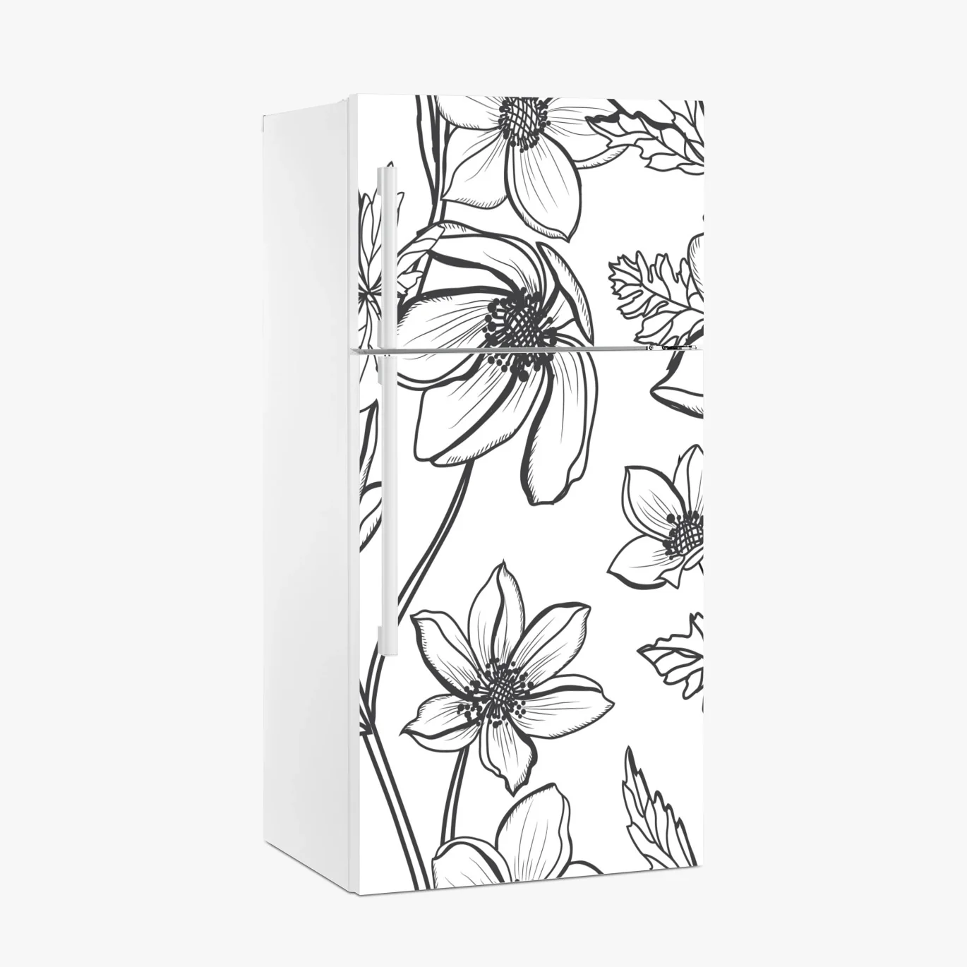 Kühlschrankaufkleber Botanische linienzeichnung mit blumen