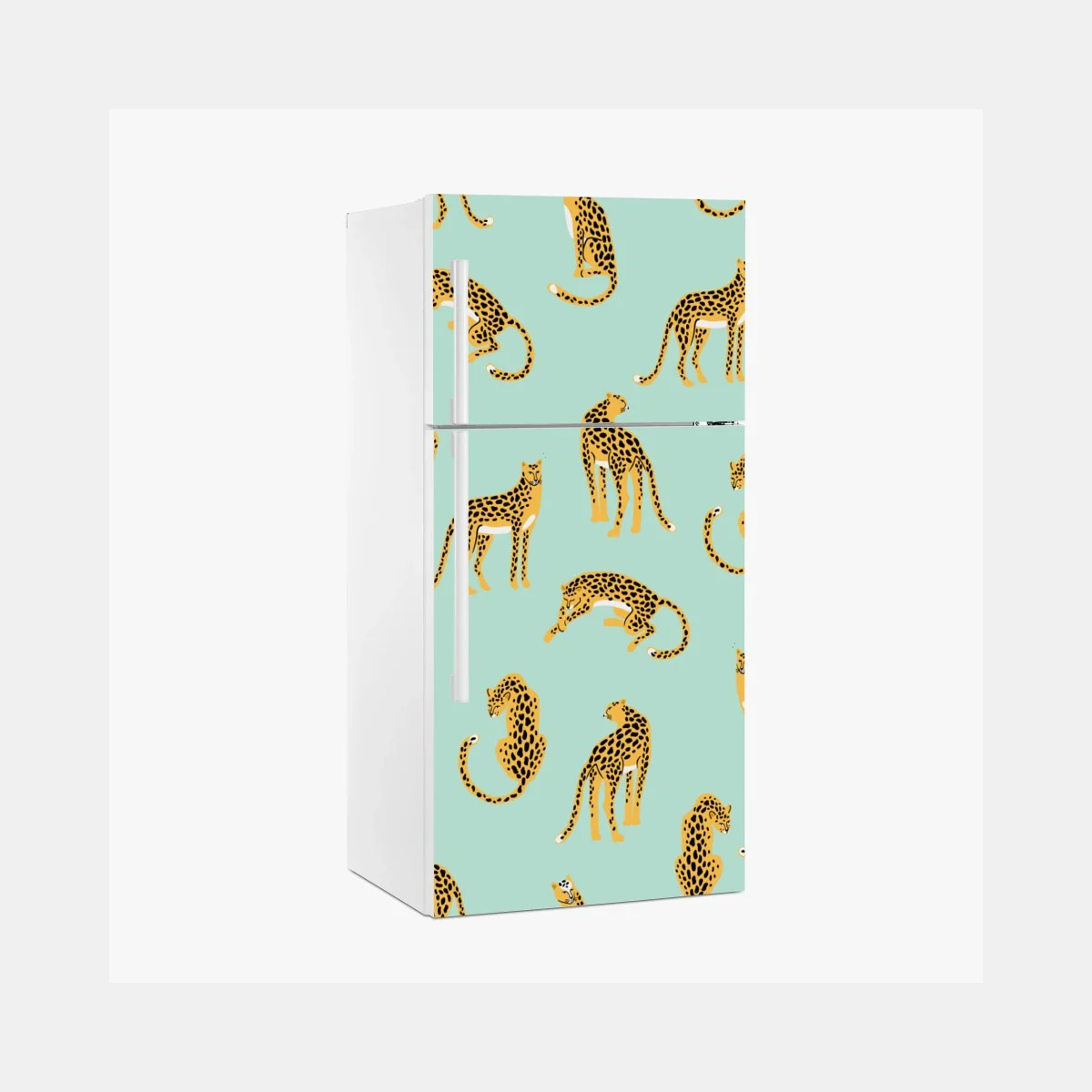 Kühlschrankaufkleber Verspieltes gepardenmuster auf türkisgrund