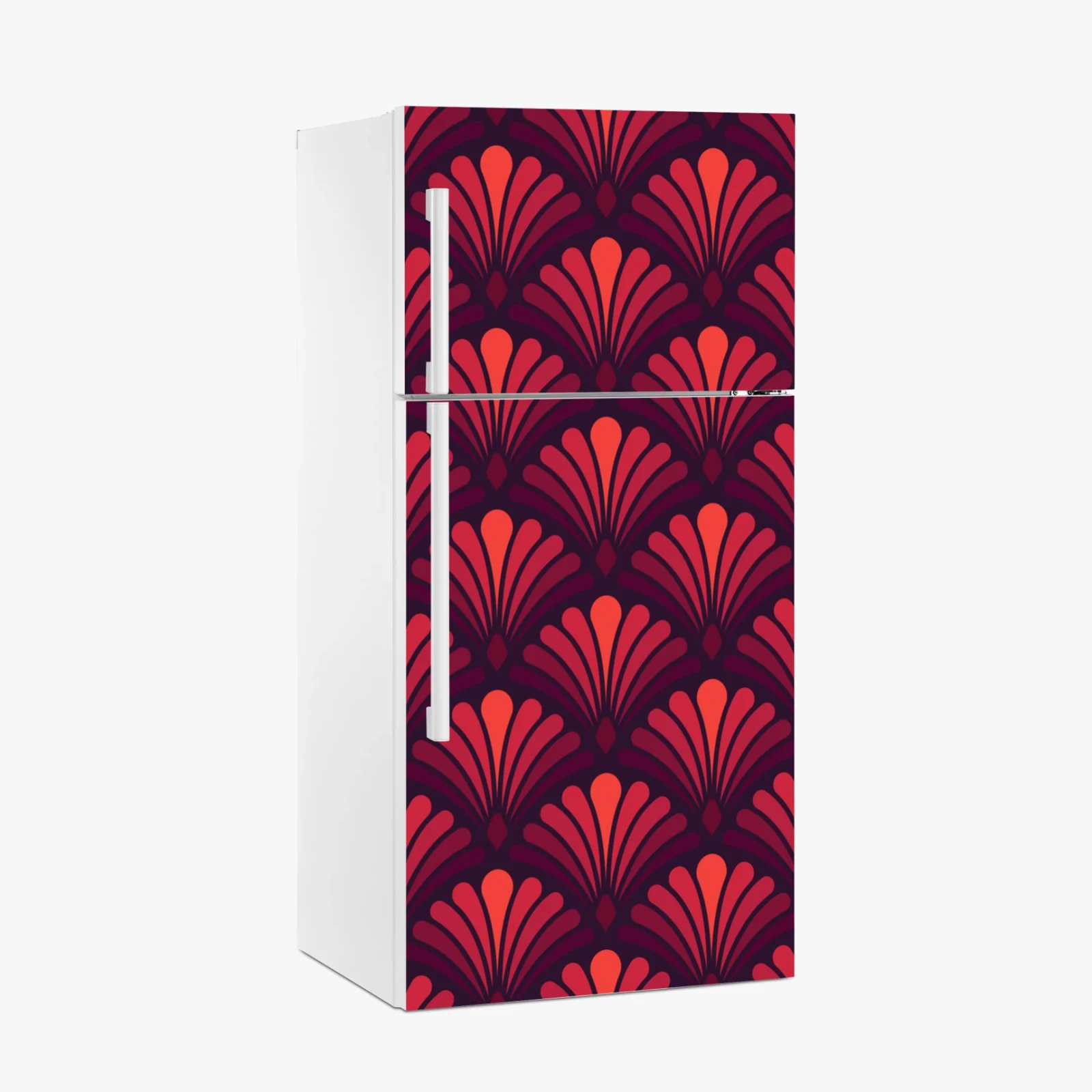 Kühlschrankaufkleber Geometrisches art-déco fächermuster in warmen rot- und violetttönen