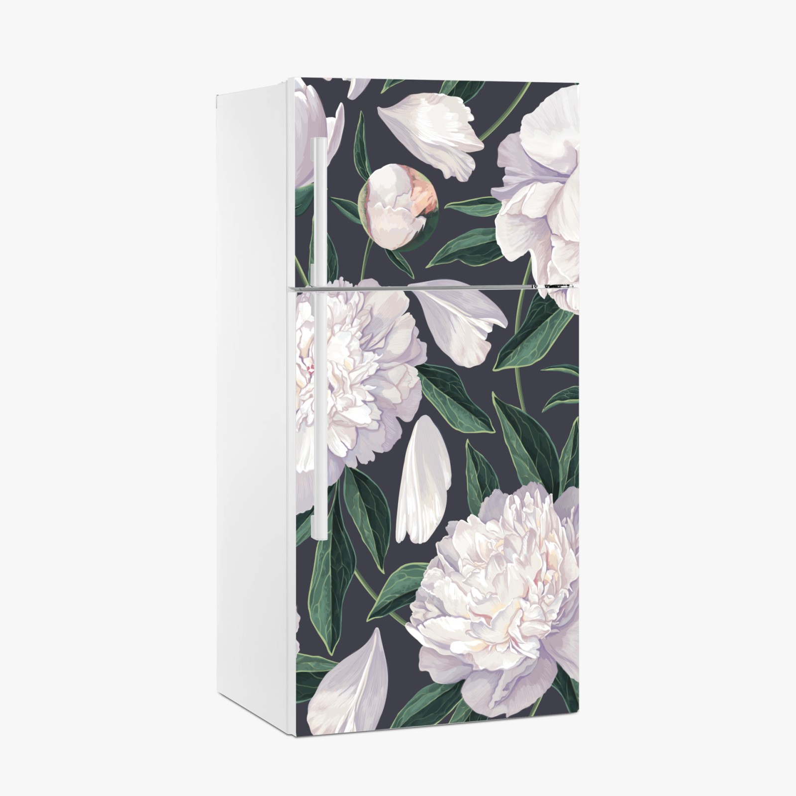 Kühlschrankaufkleber Weißes pfingstrosenmuster auf schiefergrauem hintergrund