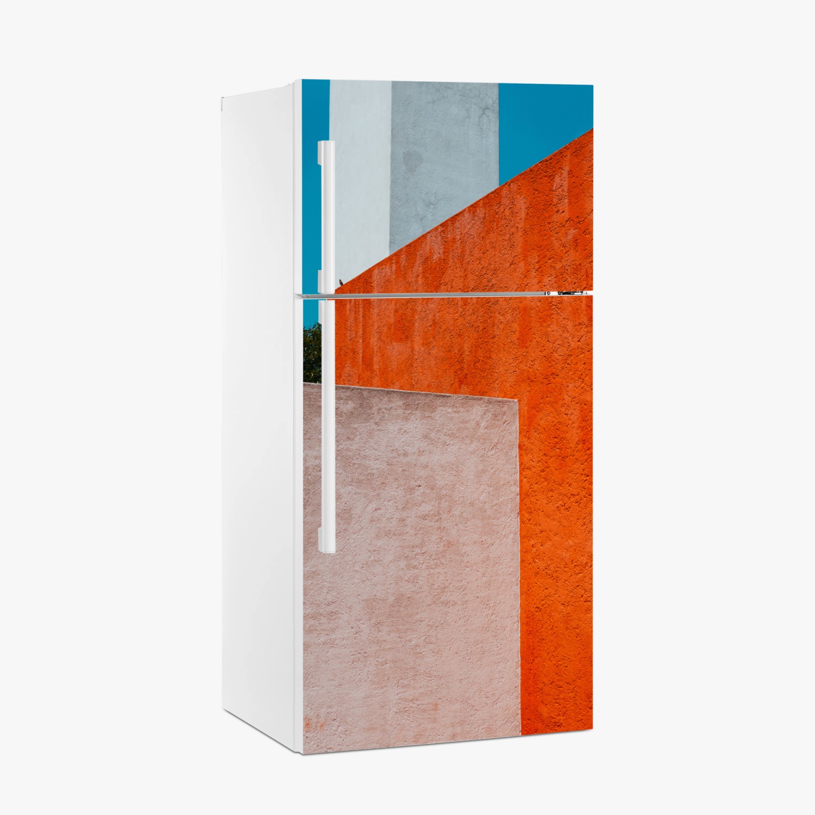 Kühlschrankaufkleber Mutige geometrische fassade in orange und türkis