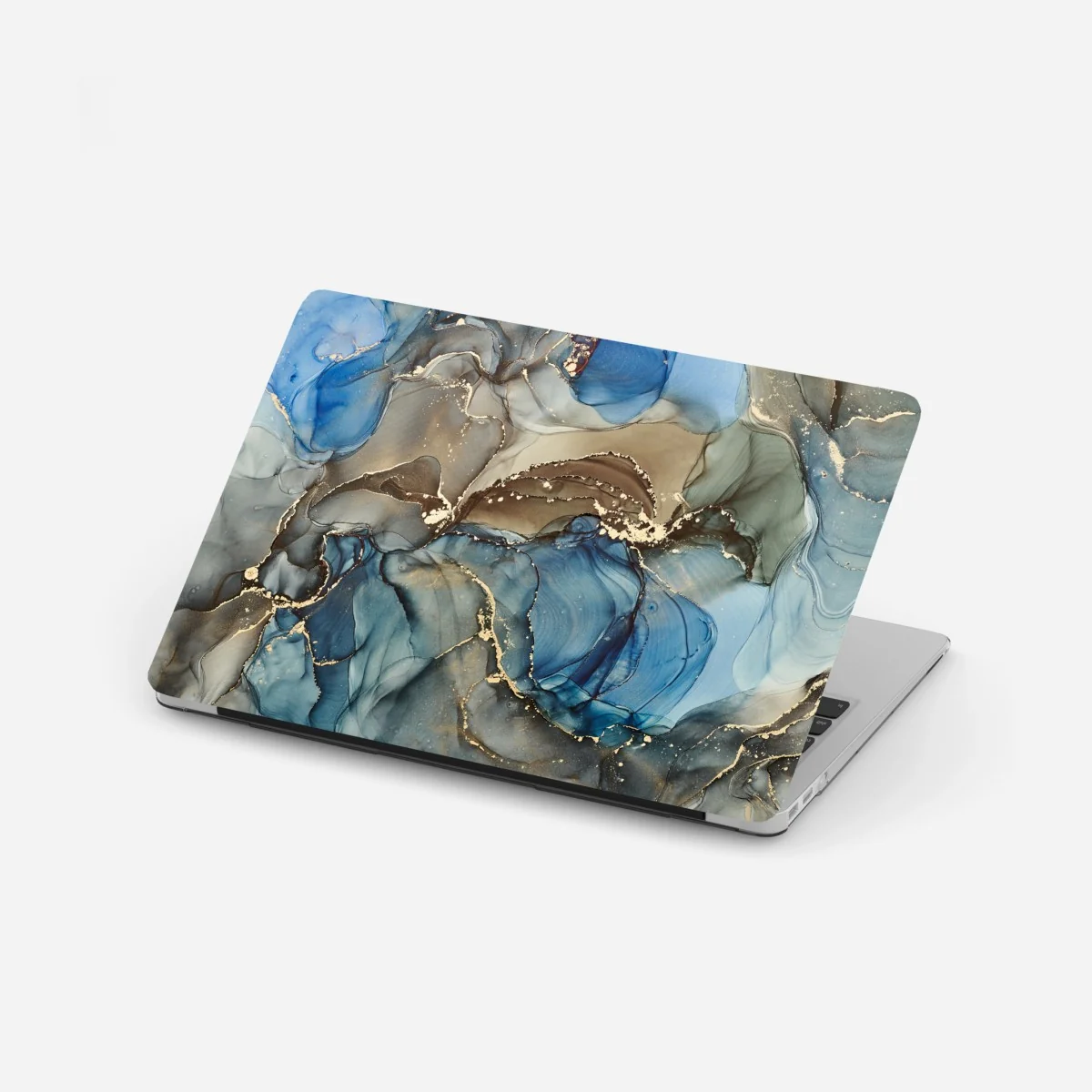 Laptop-Aufkleber Blaue und goldene flüssige abstraktion