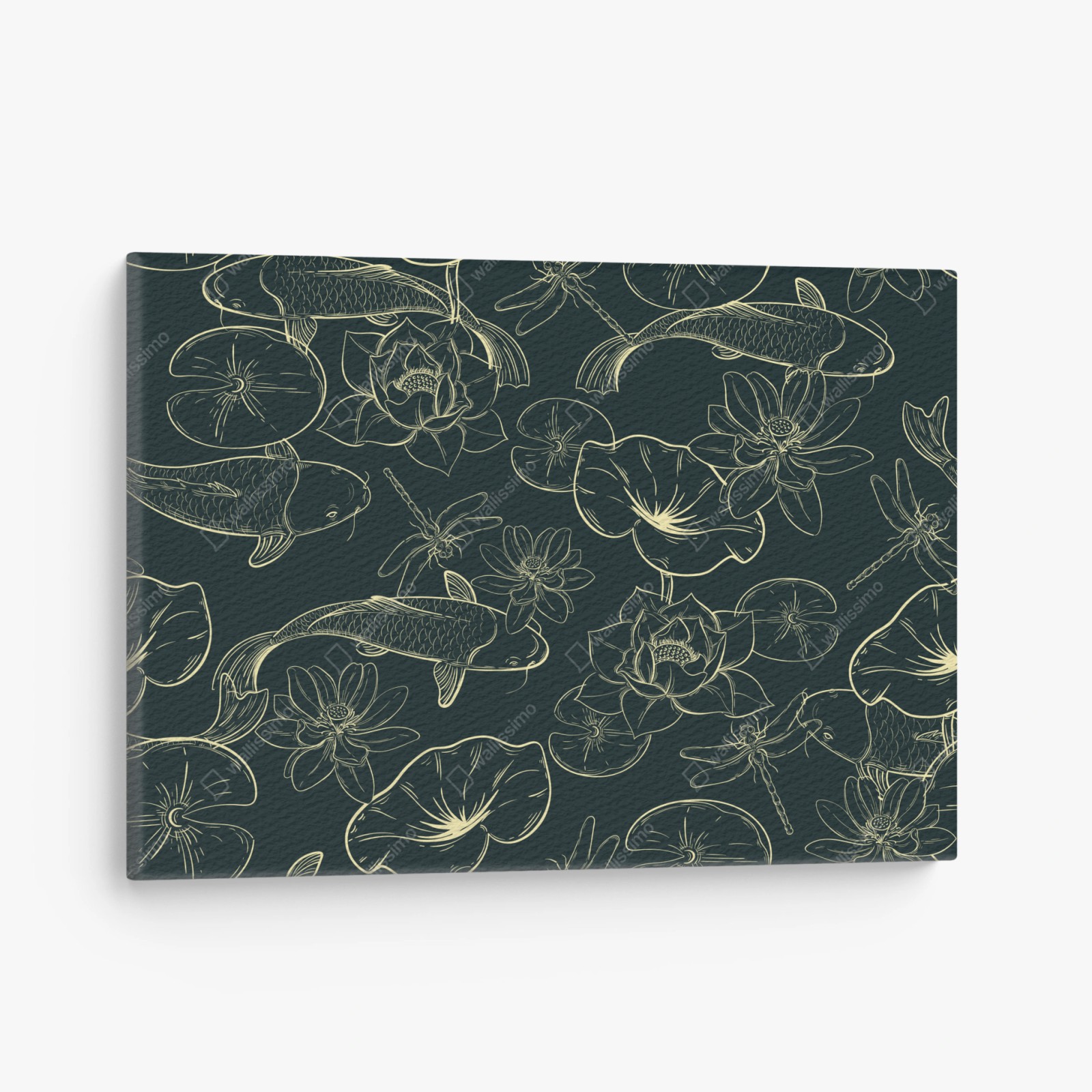 Leinwandbild Handgezeichnetes koi- und lotusmuster