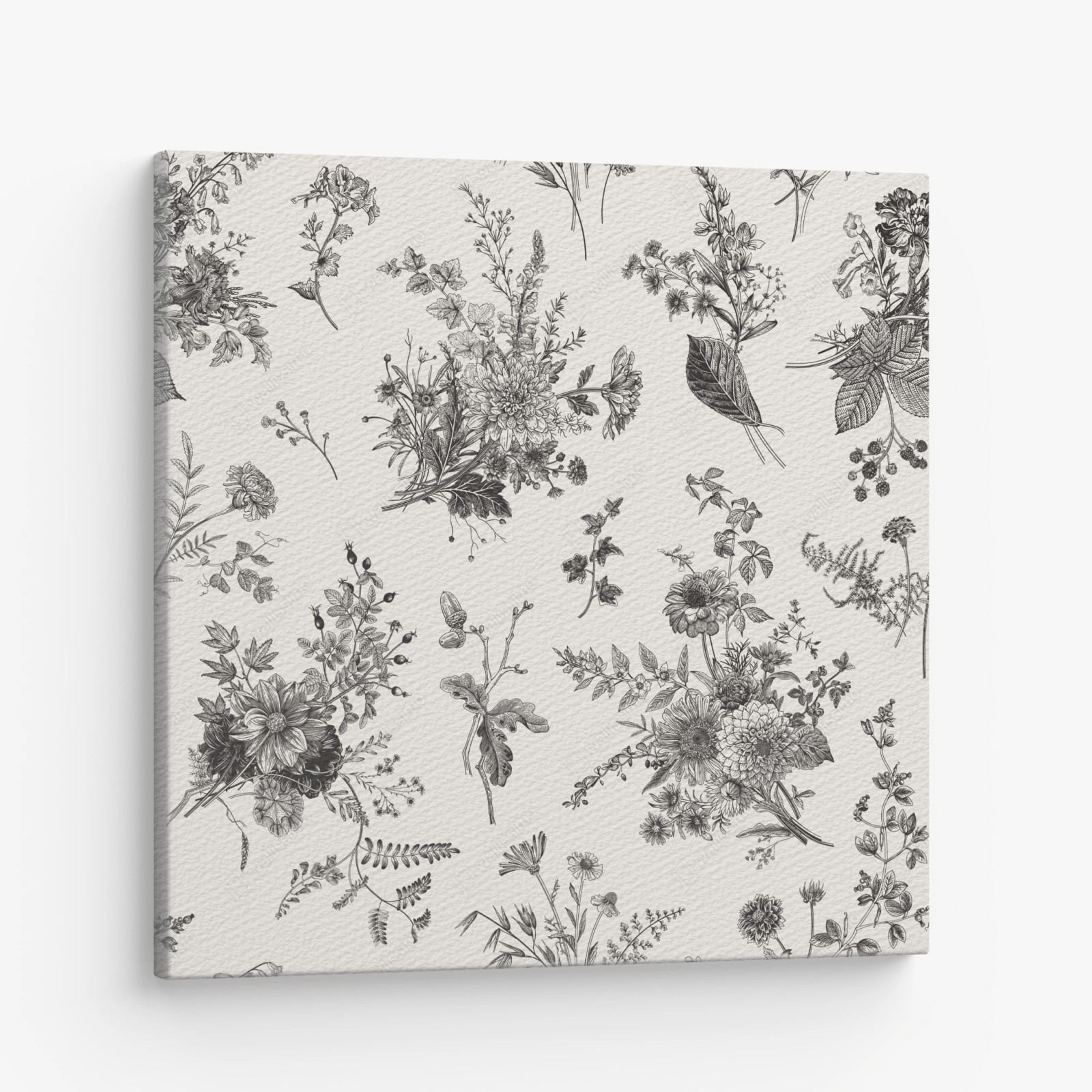 Leinwandbild Klassisches schwarzweißes blumenmuster