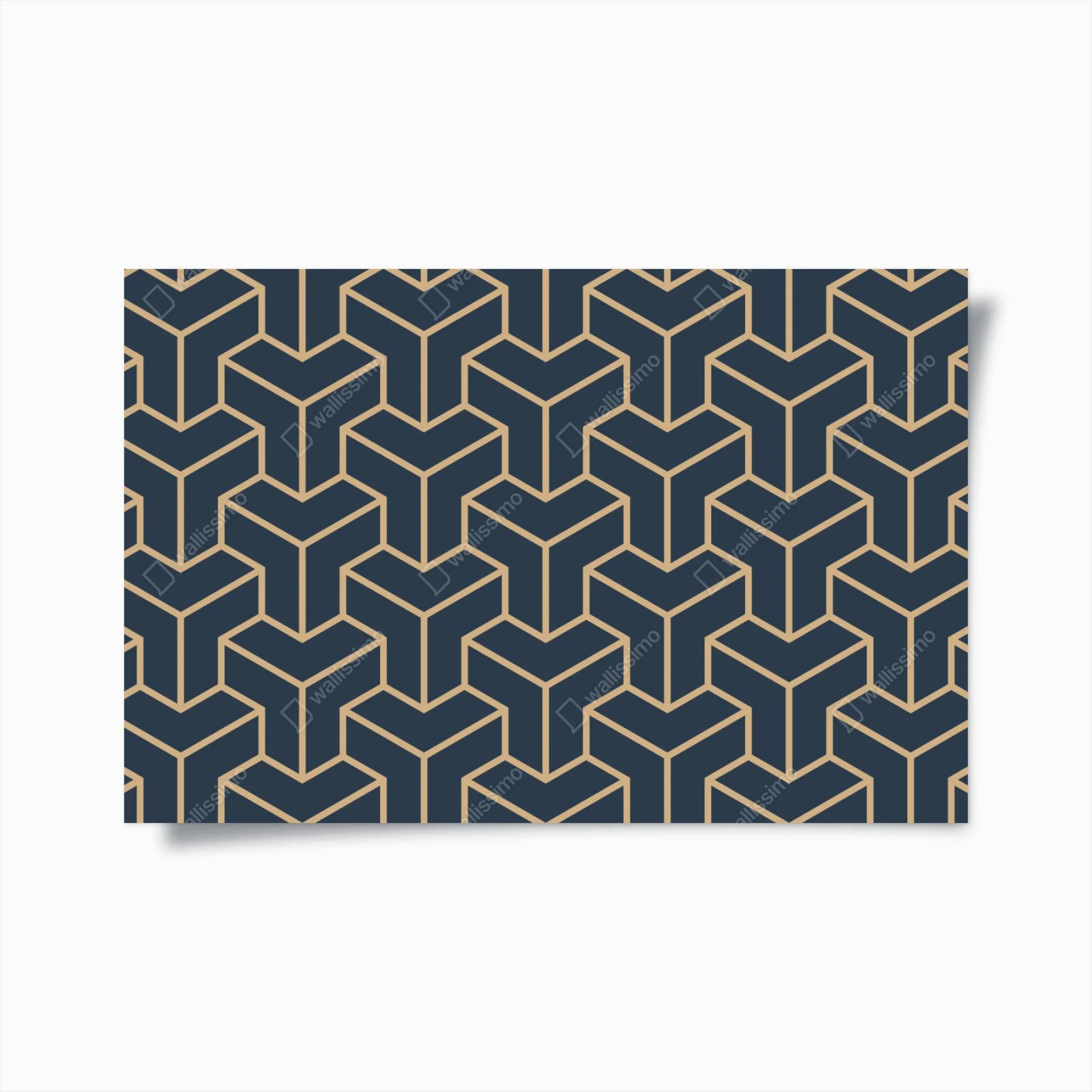 - modern, gold, muster, nahtlos, geometrisch, würfel, art deco, marineblau, optische täuschung, 3d
