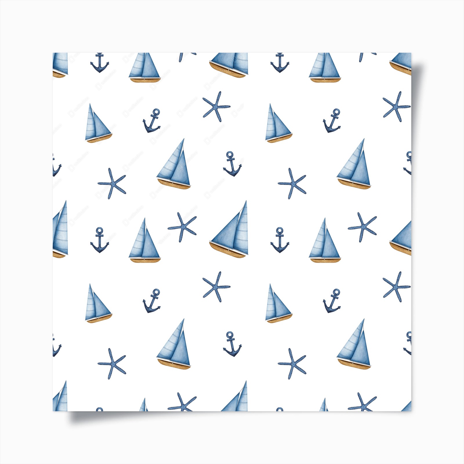- kinderzimmer, meer, blau, boot, segelboot, anker, seestern, maritim, aquarell, nahtloses muster