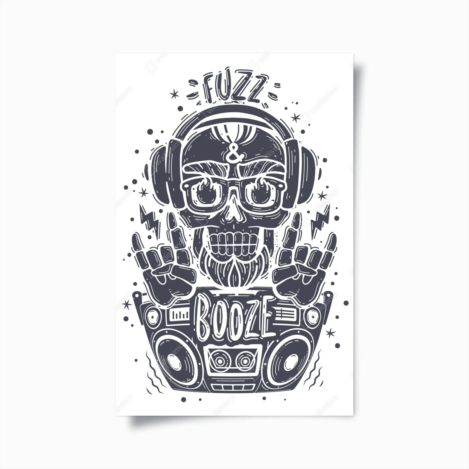 Poster Dj-schädel mit boombox und kopfhörern