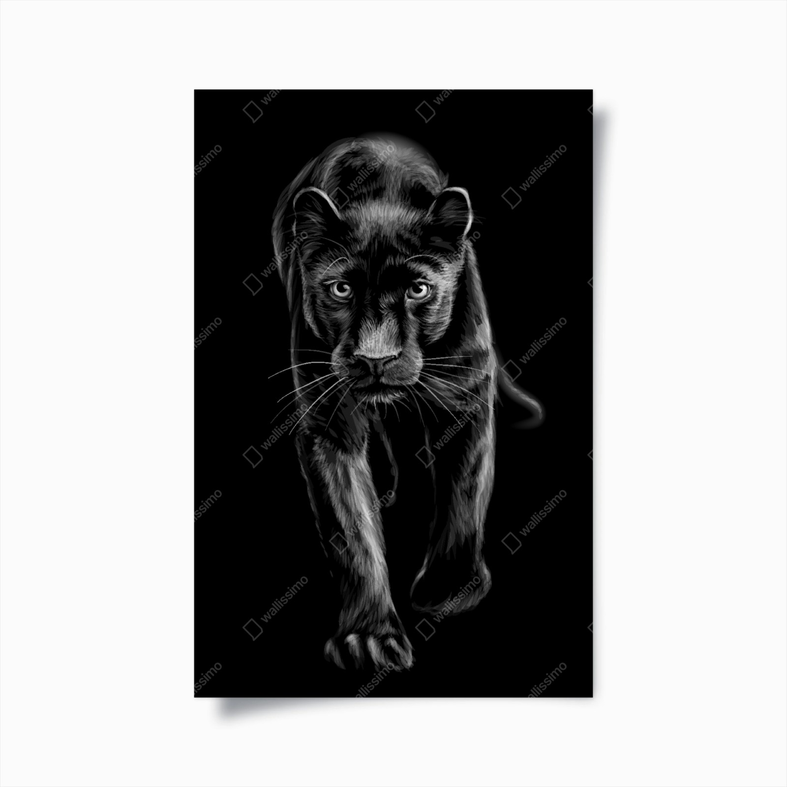 - tiere, illustration, minimalistisch, monochrom, schwarzweiß, schwarzer panther, panther, wildtier, grosskatze, druck