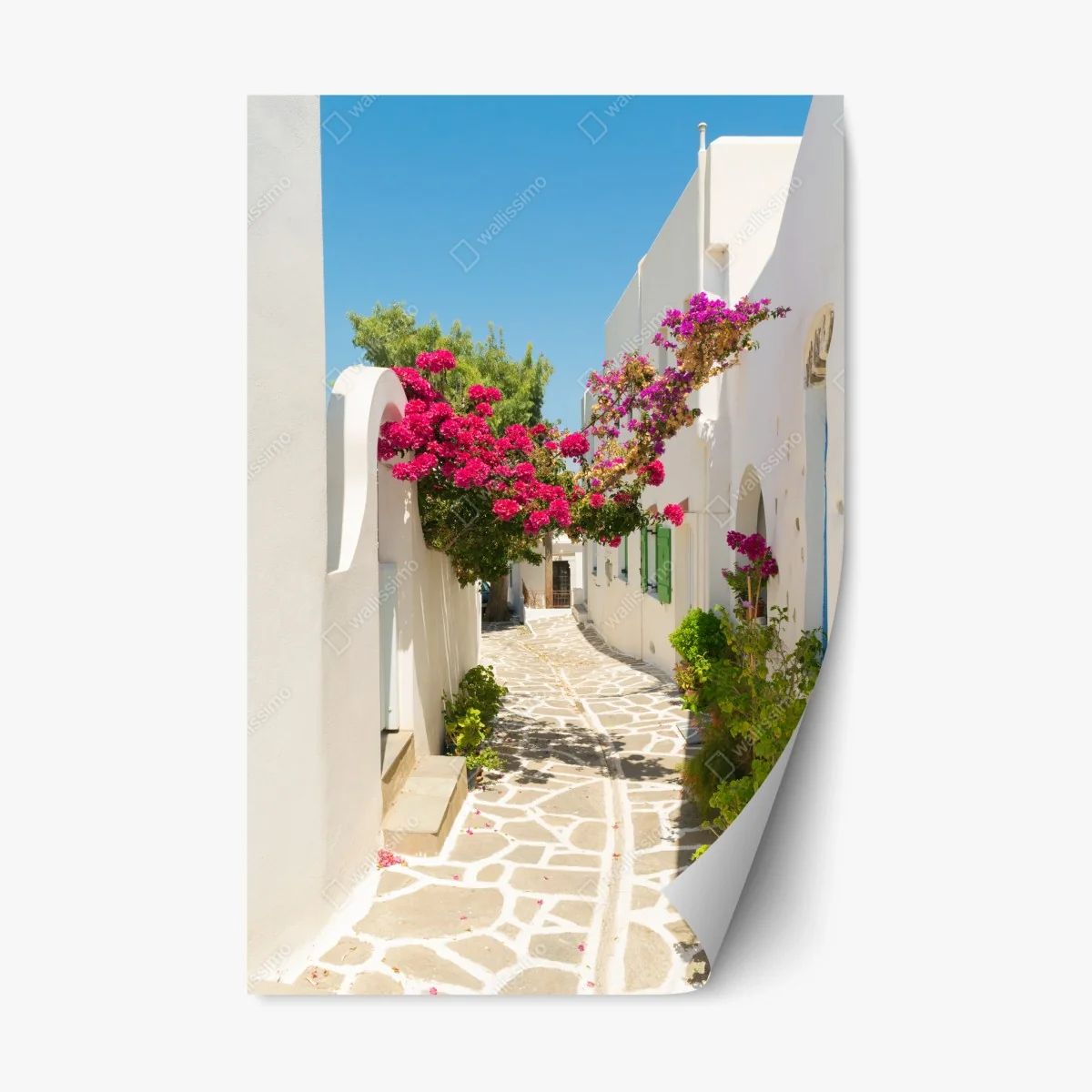 Repositionierbarer Aufkleber Sonnige mediterrane gasse mit bougainvillea