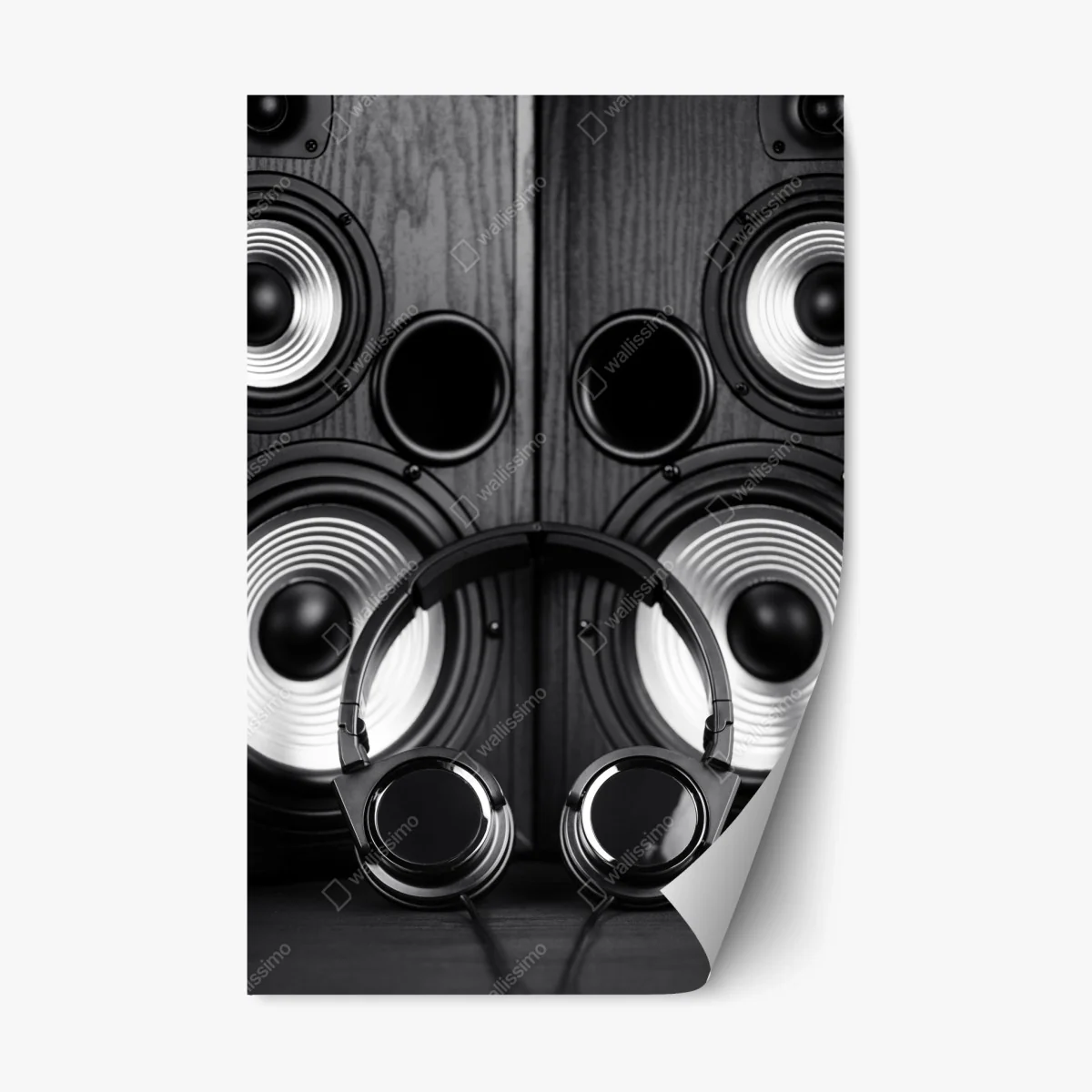 Repositionierbarer Aufkleber Monochromes audio-ensemble mit kopfhörern und lautsprechern