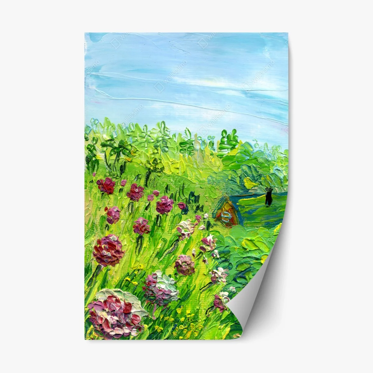 Repositionierbarer Aufkleber Pfingstrosenwiese im frühling — impasto blumenbild