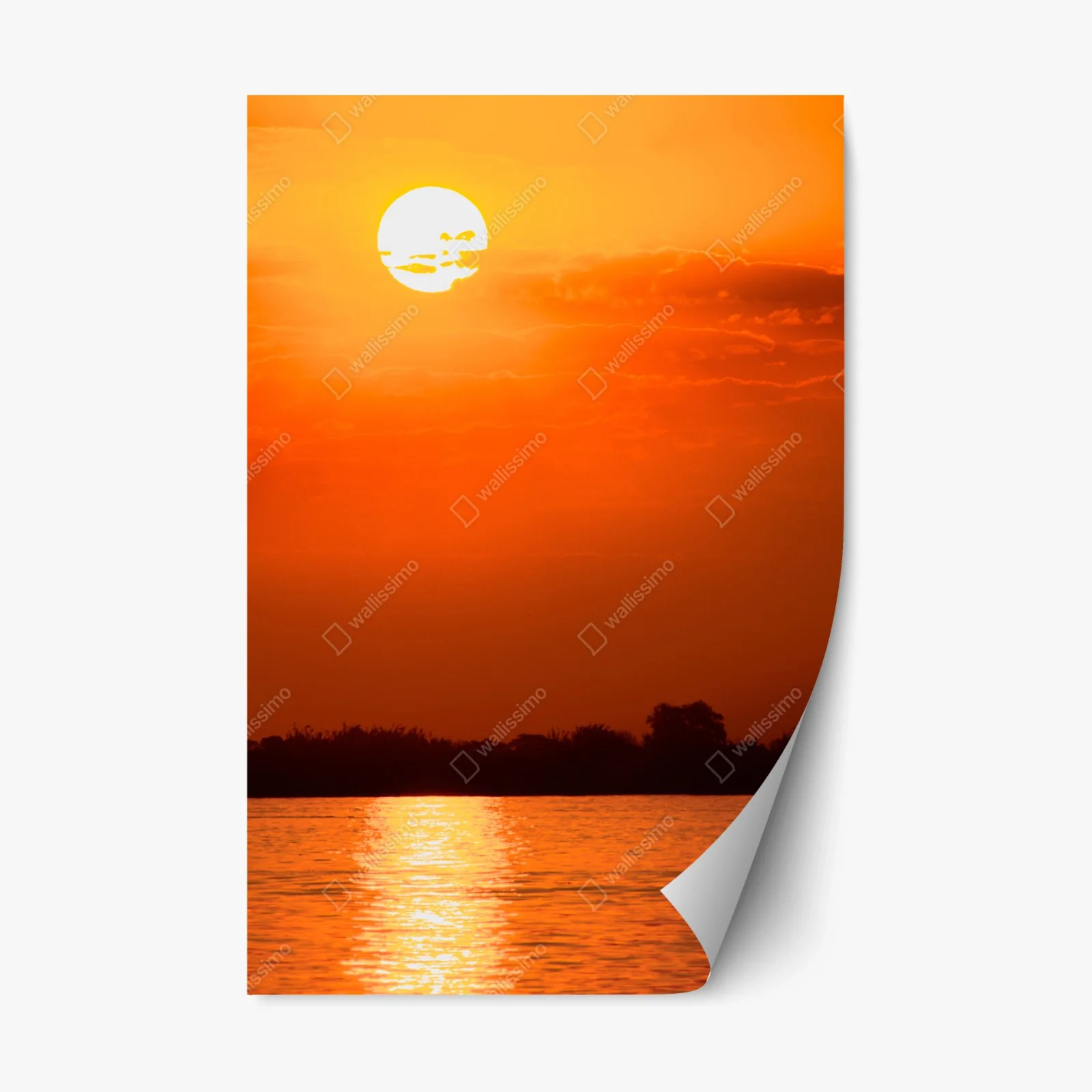 Repositionierbarer Aufkleber Goldener sonnenuntergang über ruhigem see
