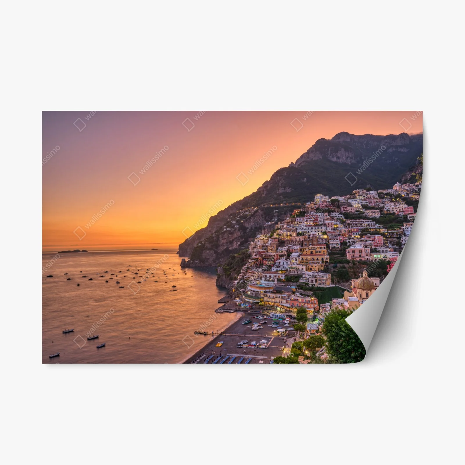 Repositionierbarer Aufkleber Sonnenuntergang über Positano, Amalfiküste