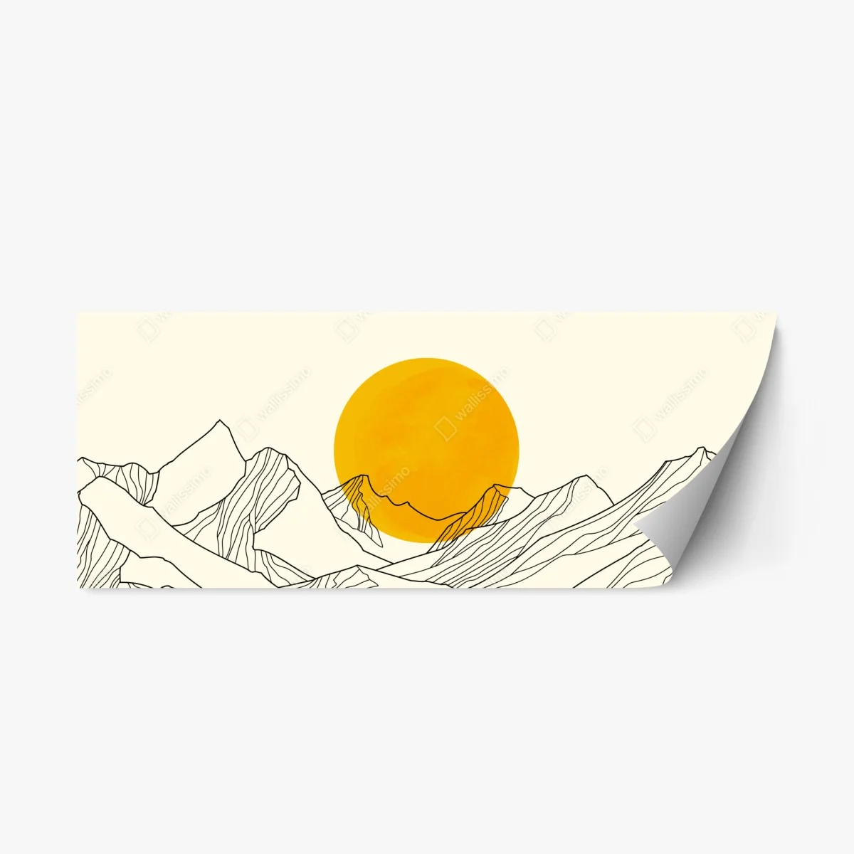 Repositionierbarer Aufkleber Goldene sonne über minimalistischen bergen