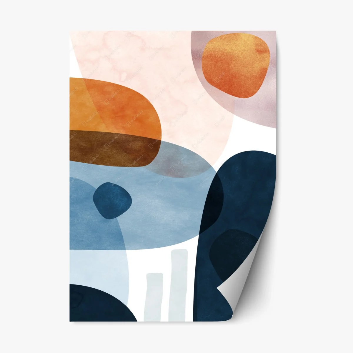 - minimalistisch, blau, abstrakt, aquarell, wanddeko, geometrisch, moderne kunst, organische formen, orange, mid-century