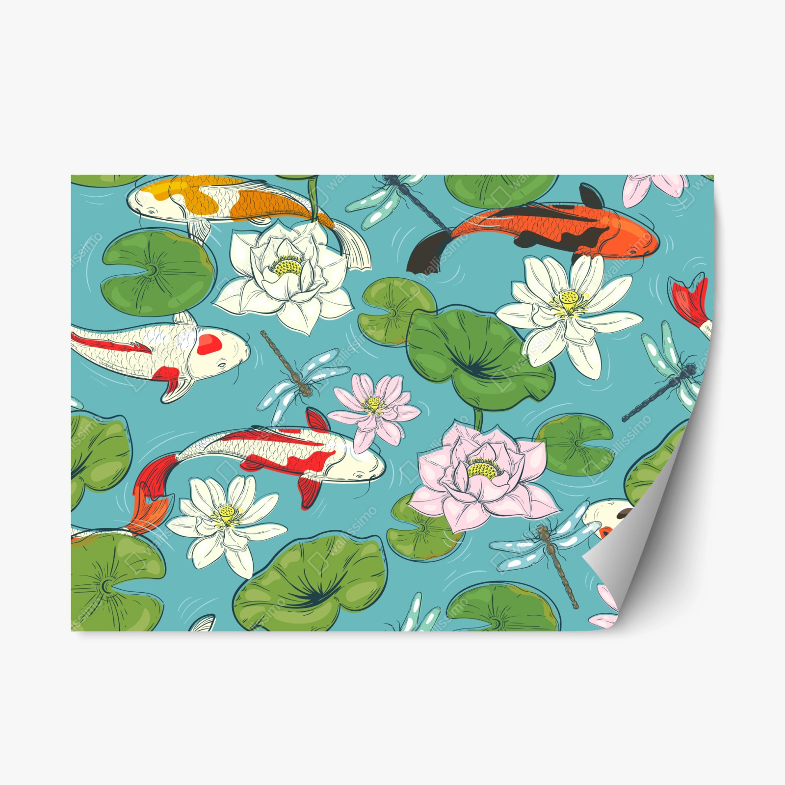 Repositionierbarer Aufkleber Ruhiger koi-teich mit lotuspflanzen