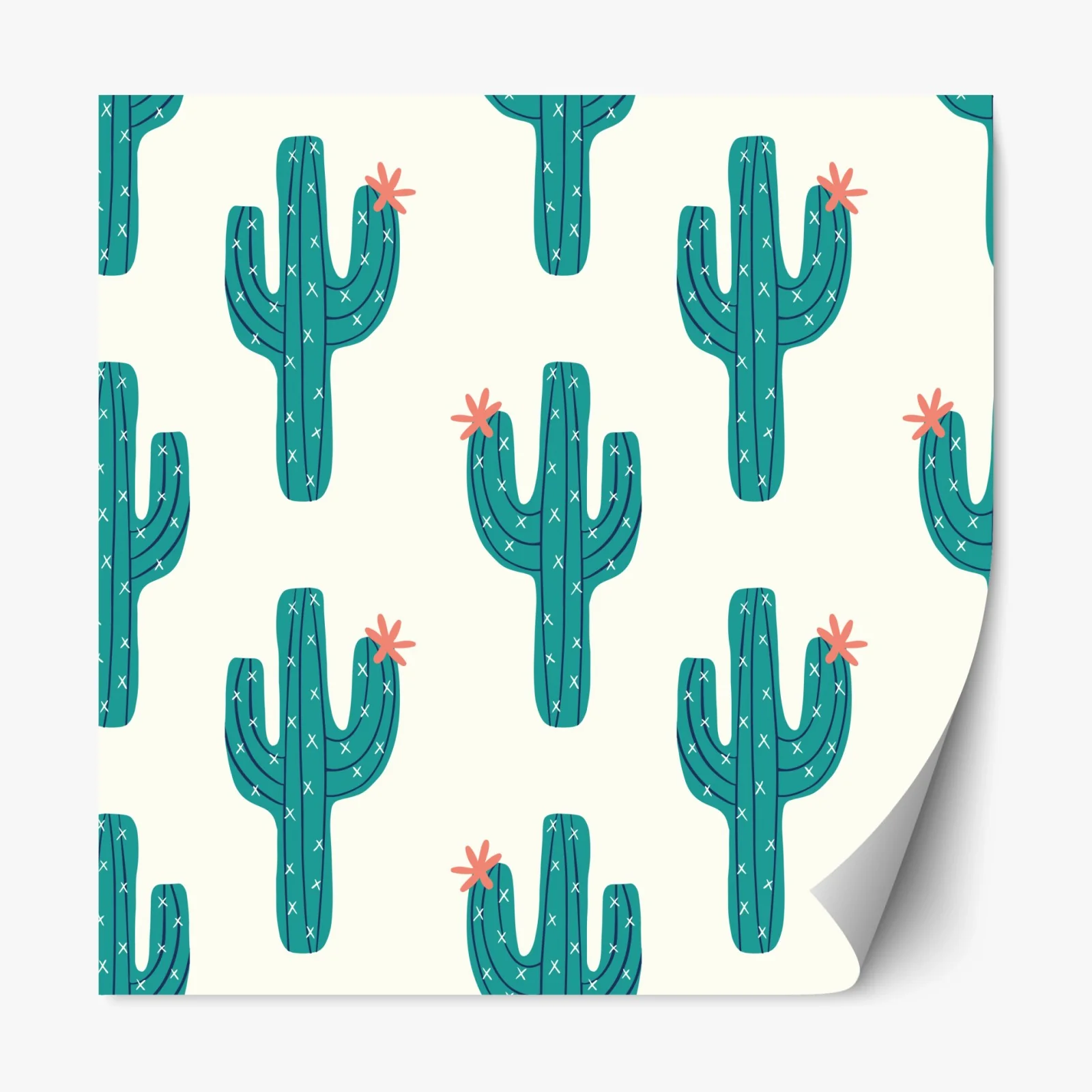 Repositionierbarer Aufkleber Verspieltes türkis kaktusmuster