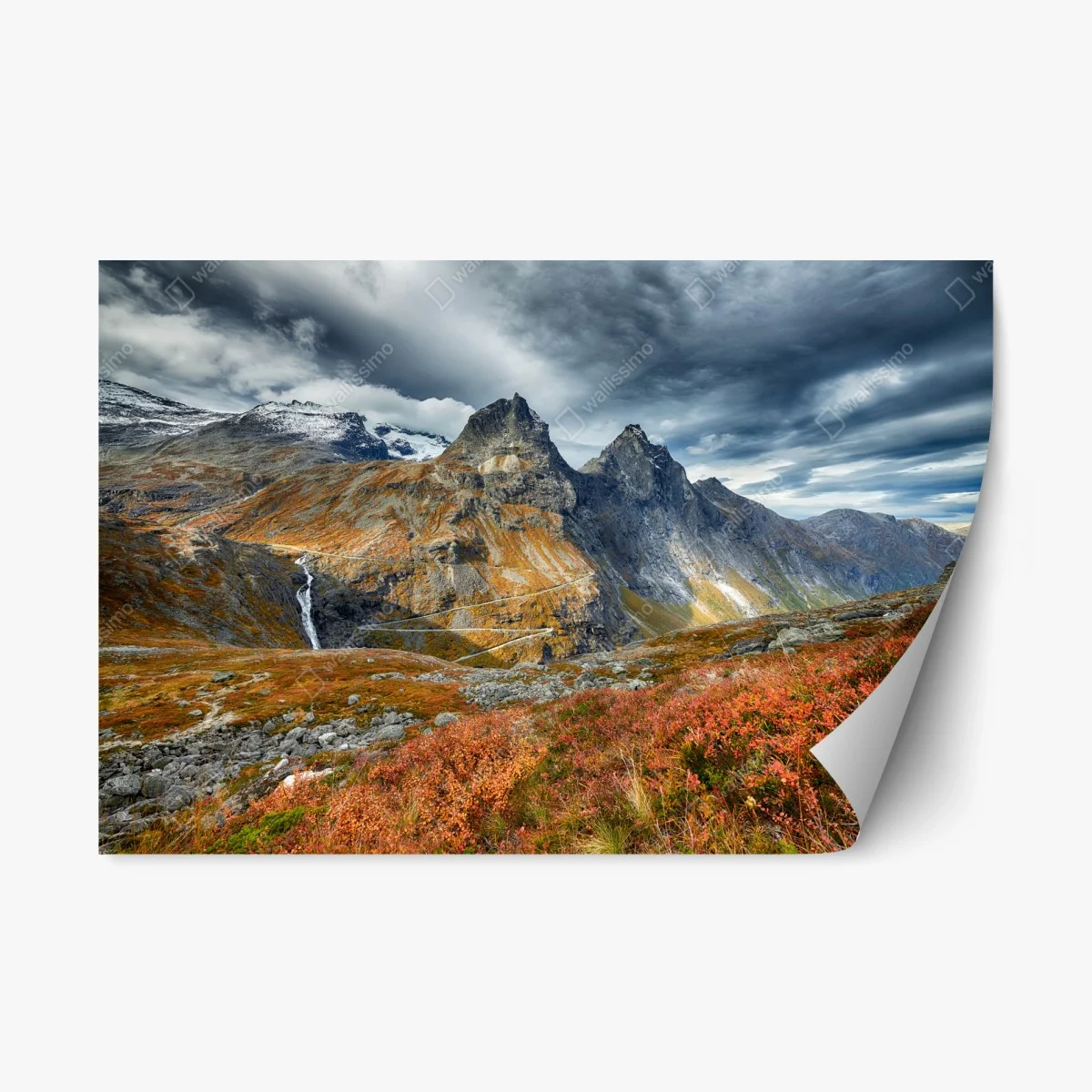- panoramablick, berglandschaft, dramatischer himmel, felsige gipfel, wasserfall, herbstfarben, naturfotografie, alpine landschaft, herbst in den bergen, serpentinenstraße
