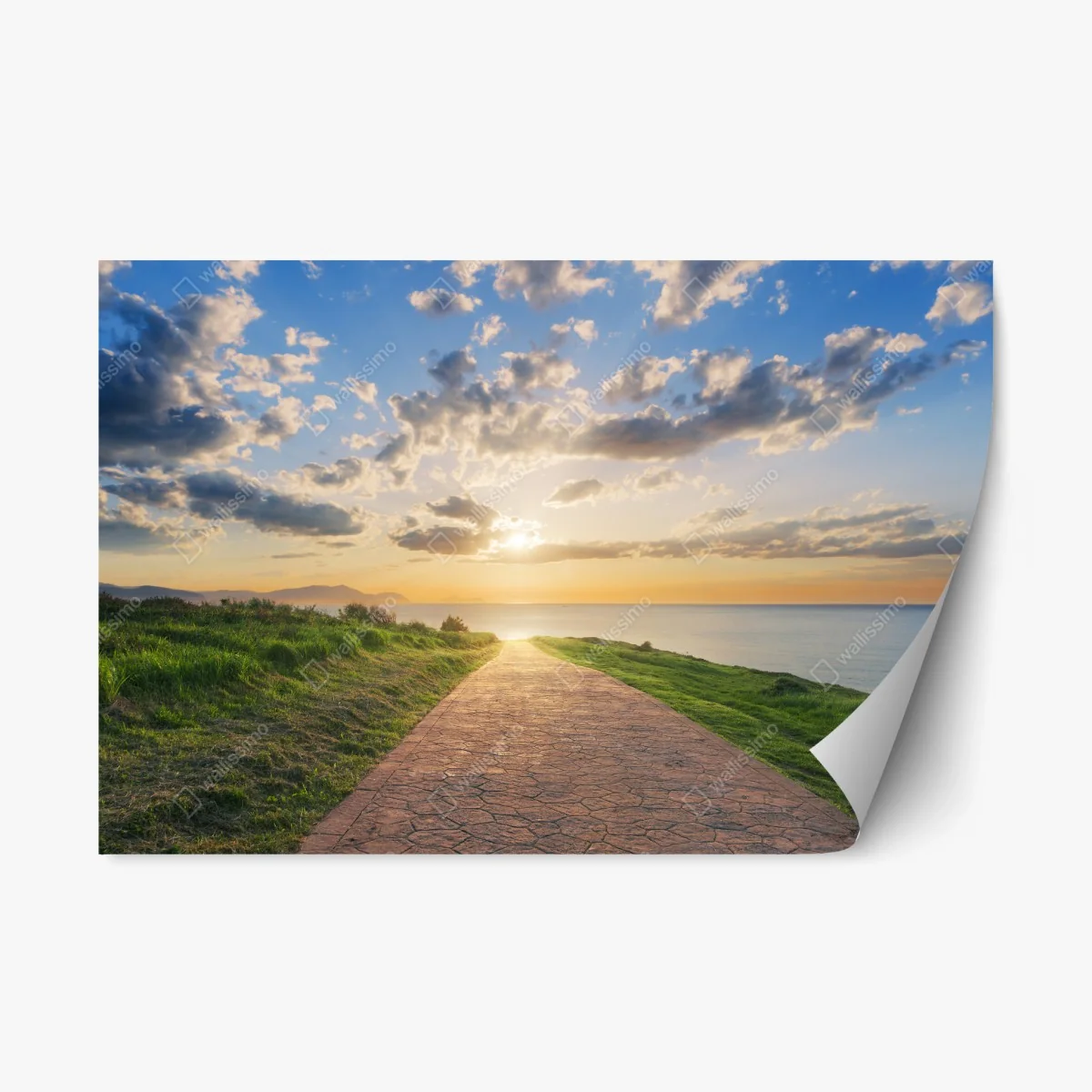 Repositionierbarer Aufkleber Weg zum meer bei sonnenaufgang