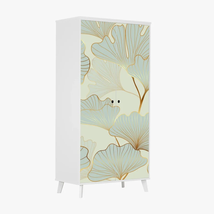Schrankaufkleber Pastell ginkgo blättermuster mit goldakzenten
