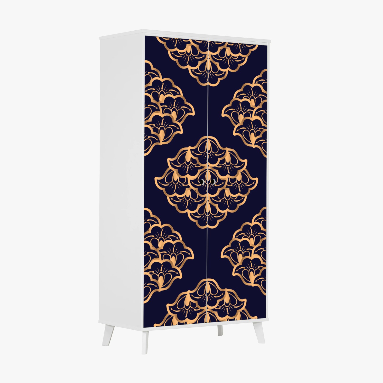Schrankaufkleber Goldenes damastmuster auf marineblauem hintergrund