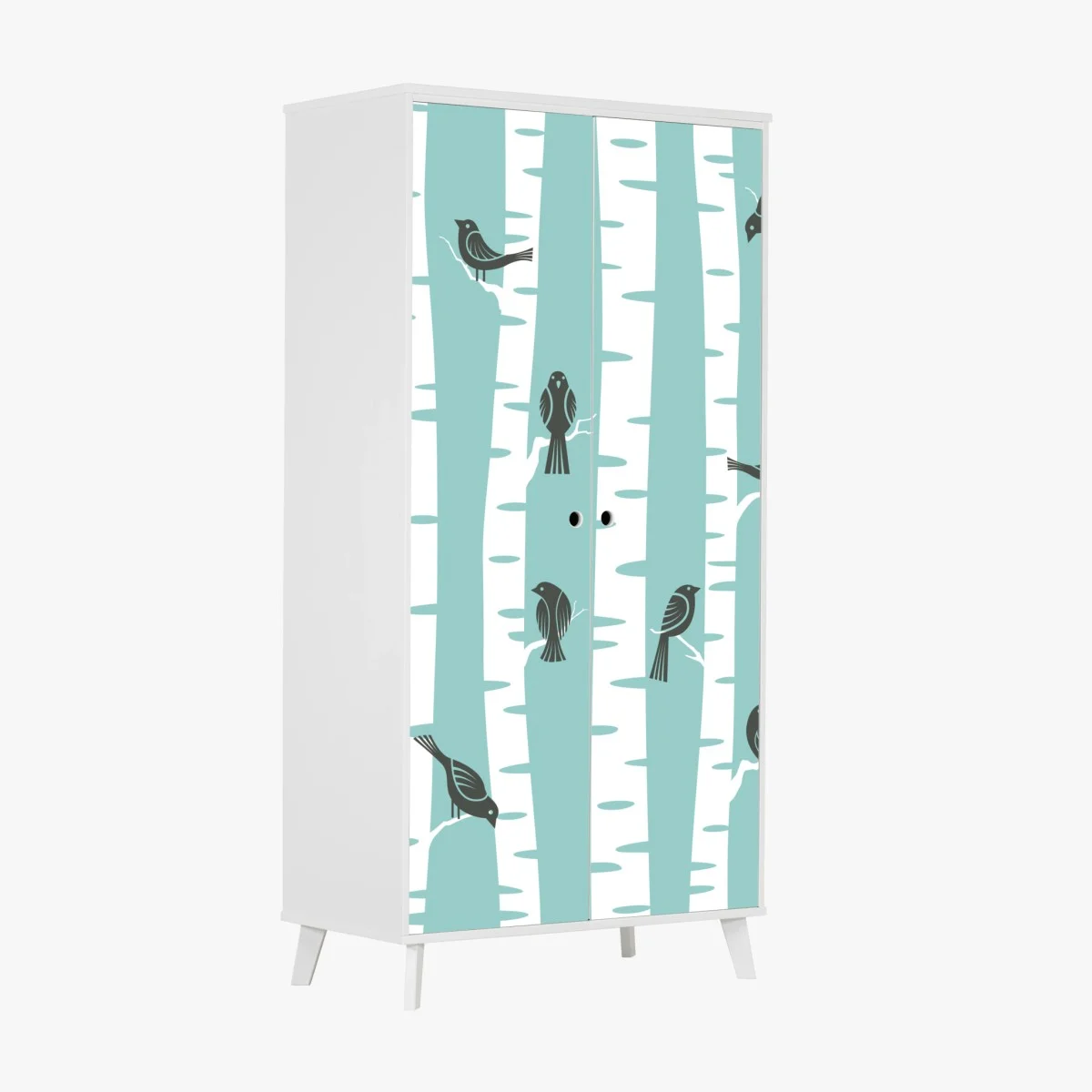 Schrankaufkleber Türkis birkenwald mit vögeln